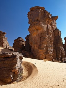 L’homme du désert connaît son Tassili du bout des pieds, déambulant en toute insouciance entre cheminées de pierre et langues dunaires jusqu’à ces trésors rupestres qui font songer parfois aux figures de ces temps modernes chères à Matisse. Couvrant une superficie de 80 000 km2, le parc national du Tassili fut créé en 1972 et classé au patrimoine mondial de l’Unesco en 1982. Il y est inscrit au nombre des treize sites d’art pariétal et rupestre au monde, dont celui de la vallée de la Vézère en France (Cap Blanc, Lascaux, Rouffignac …). Comme le souligne l’ethnologue Fabrice Grognet qui entreprit diverses missions sur le site, « on y trouve de nombreuses traces de l’homme néolithique : des outils, certains objets de la vie quotidienne et surtout des peintures et des gravures rupestres. Des peintures sur les parois des abris rocheux, des gravures creusées sur les surfaces lisses et les dalles bordant les lits d’oueds aujourd’hui asséchés. « Mémoires de pierre », les fresques du parc du Tassili constituent un incroyable musée à ciel ouvert ».