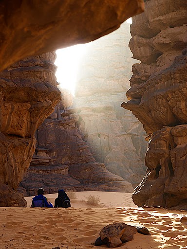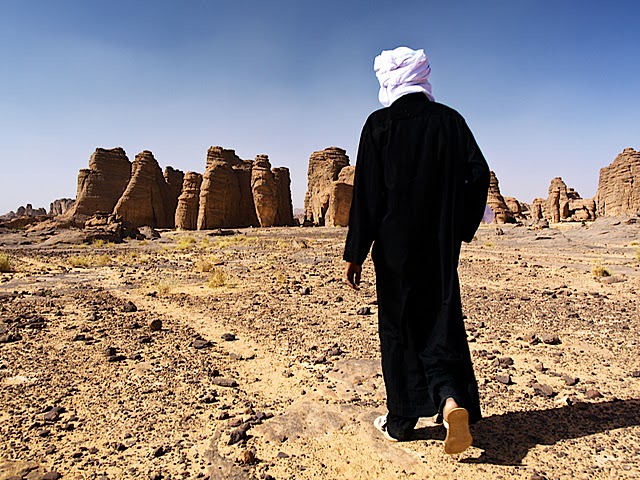 Interdiction de s’aventurer jusque là sans un guide, question de survie et d’orientation : il faut l’œil avisé du Touareg, sa connaissance presque innée du milieu pour se repérer sans boussole ni GPS et conduire sans encombre sa troupe de marcheurs jusqu’au prochain bivouac ou au point d’eau stagnante, pas une oasis mais une « guelta » qui abreuvera tant les bêtes que les hommes. Et, la nuit tombée, se reposer à la belle étoile, plutôt sous une voûte constellée d’étoiles grâce à l’absence de pollution atmosphérique…