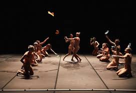 Courbet. Une nudité ni provocatrice ni arrogante, la nudité humaine tout simplement proposée à nos regards dissimulés derrière les habits et convenances. Emma Dante, celle qui voit le théâtre comme un moyen de « révéler les malaises et les problèmes que les gens ont tendance à refouler », nous invite au voyage. Des premières heures de l’humanité jusqu’à l’apocalypse finale qui se dessine à l’horizon. Avec « Bêtes de scène », l’esthétique corporelle n’est pas valeur première. Les interprètes ne sont ni Diane ni Apollon, seulement humains, trop humains, leur nudité est nôtre : bruns ou blonds, grands ou petits, maigres ou gros… L’enjeu est ailleurs. Douleurs et malheurs, guerre et paix, amour et haine se donnent à voir en des tableaux d’une beauté sidérante, duos ou mouvements d’ensemble, toujours une main posée sur le sexe et l’autre sur la poitrine comme pour masquer ce qui est devenu péché aux yeux de nos contemporains : de l’homme à l’animal, et vice versa, quid de la « bête humaine » ? Dans une scénographie de belle facture, un regard tragique sur notre condition, pourtant parsemé de tableaux d’un humour irrésistible.