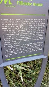 L’histoire peut avoir l’ironie facile et parfois cruelle. Théophile Sueur, industriel en cuir et peaux, a fait édifier en 1872 une gentilhommière au cœur d’un parc des hauts de Montreuil, à quelques encablures de ses usines. Pouvait-il imaginer que l’un de ses successeurs (il fut maire de la ville de 1866 à 1876, sautant allègrement du second Empire à la IIIème République), Hilaire Fernand Soupé, communiste bon teint qui rompra avec le PCF pour adhérer en 1940 au PPF de Doriot, convaincrait en 1937 le conseil municipal de se porter acquéreur de l’édifice. Deux ans plus tard, en 1939, le maire Soupé coupe le ruban de ce qui est devenu le Musée de l’Histoire Vivante, avec une exposition consacrée au 150e anniversaire de la Révolution, voué dès son origine à l’édification des masses par la narration de l’épopée communiste.
