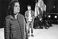 en soirée… Sous un plafond de néons à la lumière criarde, une machine à laver et un monticule de linges pour seul décor, une femme, jeune épouse et mère de trois enfants, essore et lessive ses rancoeurs, explose le couvercle des non-dits et servitudes endurées, crie sa soif de liberté et d’une vie autre ! « La pièce nous plonge dans une situation intime, celle d’une femme au foyer qui va gripper les rouages de son quotidien », commente Simon Delétang, « qui l’a fait revisiter sa vie et les renoncements successifs qui la constituent ». Une parole frontale, une mise en scène minimaliste mais fort suggestive et captivante, une impressionnante Marion Couzinié dans le rôle-titre. Un texte puissant, une écriture au cordeau de Magali Mougel, une jeune auteure originaire des Vosges que le Théâtre du Peuple s’enorgueillit à juste titre de mettre sous les feux de la rampe, une première depuis la disparition du « padre » et fondateur, Maurice Pottecher. Yonnel Liégeois