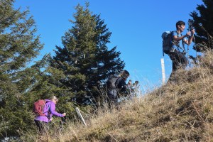 Il est bientôt 11h30, le groupe reprend son ascension vers le sommet. Culminant à 1863 mètres, le Môle offre une vue imprenable sur les massifs environnants. C’est de là que furent effectuées les premières estimations de la hauteur du mont Blanc. Contrairement à beaucoup de ses collègues, Laurent préfère rester derrière. « Si je vois quelqu’un en difficulté, je coupe l’itinéraire pour le rendre plus accessible. Je me porte en tête si le sentier est un peu piégeux. Ma priorité est d’accompagner ceux qui ont un peu de mal. Je leur donne des conseils techniques, je les aide moralement. En randonnée, le mental compte pour 70%. La marche est surtout une question de rythme. Quelqu’un qui ne fait jamais de sport et qui se retrouve dans le rouge, je suis quasiment sûr de pouvoir quand même l’amener au sommet ». Trouver le bon rythme, la bonne posture (pour ne pas couper sa respiration, par exemple…), les bons appuis, font partie des conseils usuels. Comme se munir de bâtons de marche. « Ils permettent d’économiser son énergie dans les montées et de soulager les articulations dans les descentes. Ils ont une autre fonction en cas de problème : avec deux paires de bâtons et