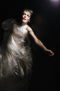 Les yeux cernés de noir, fragile et frêle dans sa tunique de plastique, Marie Payen se révèle pourtant irréductible pythie ! Clamant les mots surgissant du fonds du corps, venus de loin et se répétant depuis des millénaires… Ceux des exilés et des réfugiés de tout temps, des bannis et damnés de la terre en quête d’espoir, de fraternité, d’un havre d’humanité. Elle en appelle à Ulysse et Enée, Moïse et Abraham, même à Jésus dit le christ : mythe, conte,