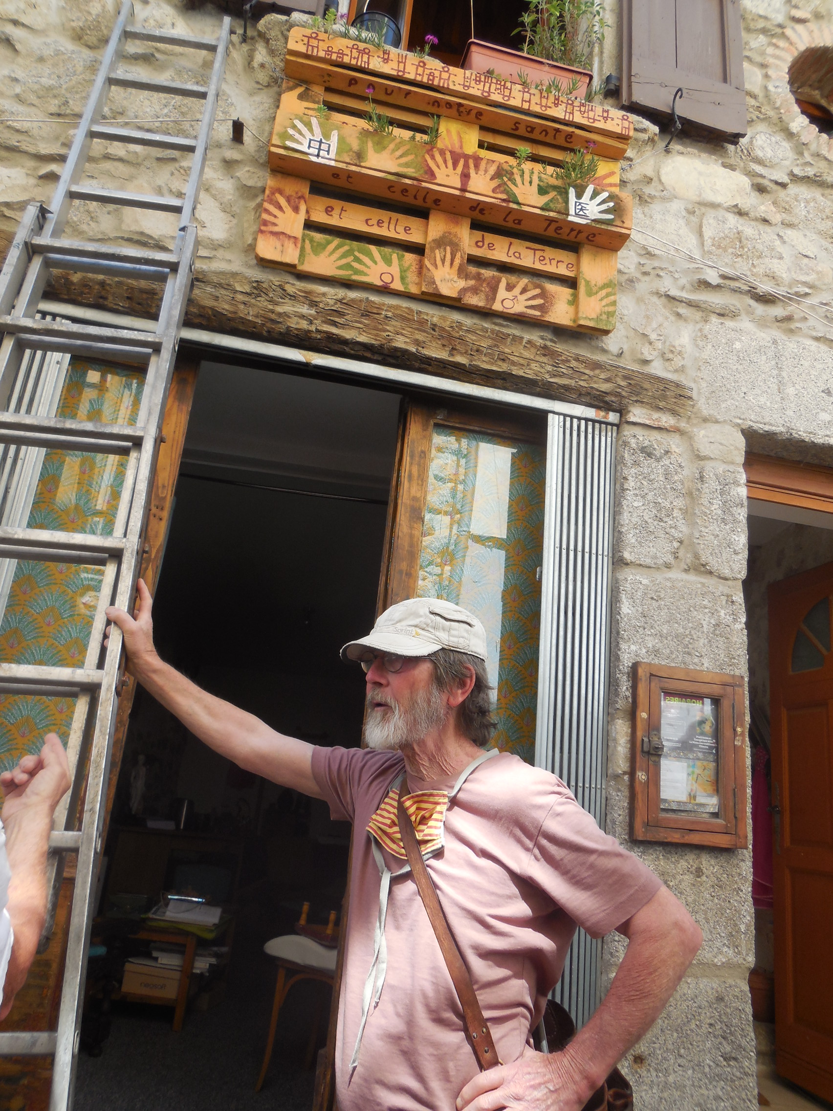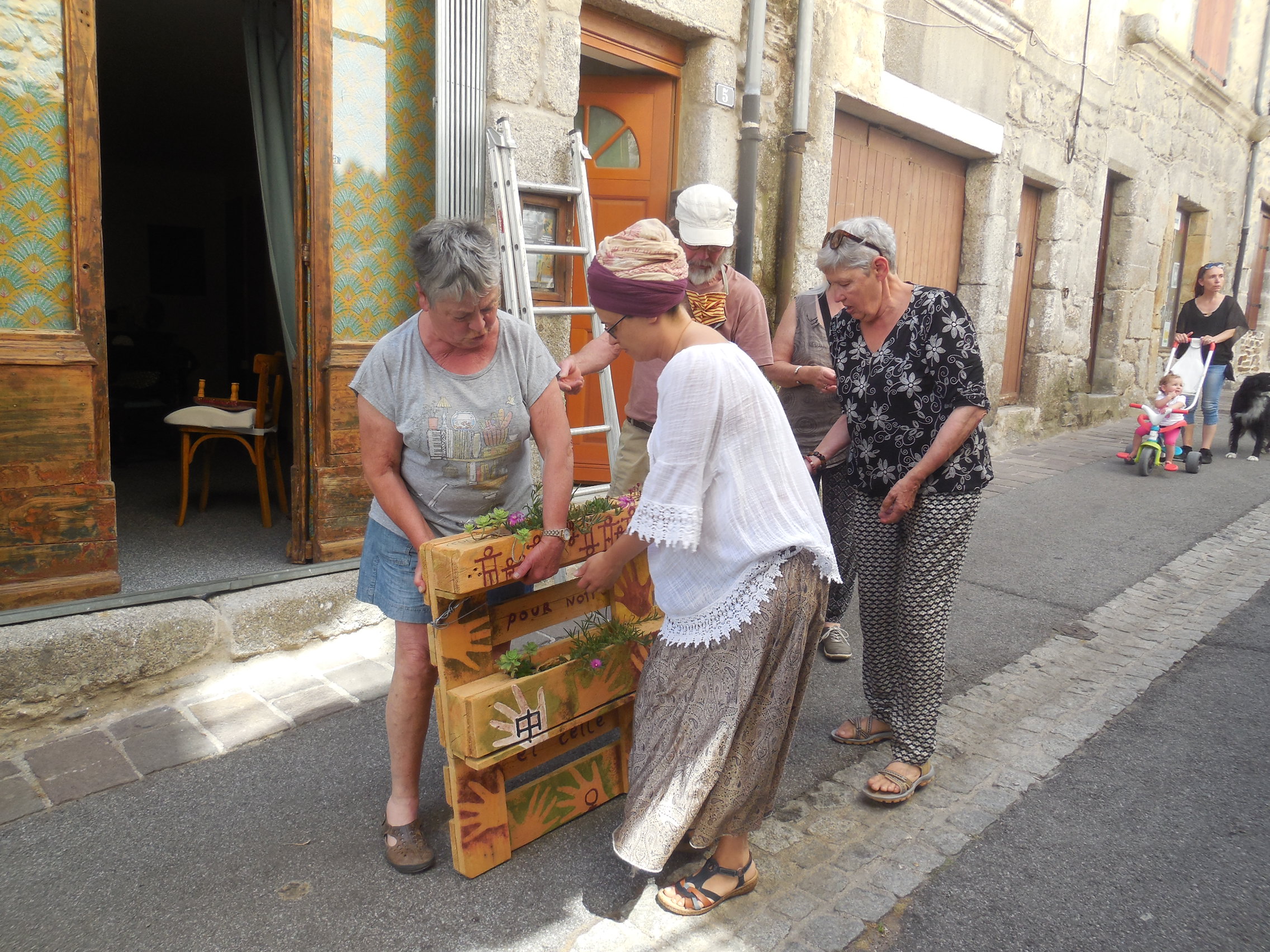 Les propriétaires et locataires concernés ont donc décidé de contester l’arrêté. Leur recours gracieux auprès du maire est resté sans réponse officielle ; une contestation hiérarchique a été adressée au Préfet du Gard… Comme le temps pressait et que la date butoir approchait, les citoyens ont procédé à leur enlèvement, mardi 30 juin.  La mort dans l’âme. Sous les regards étonnés des villageois et des visiteurs. L’occasion pour Pierre Buchberger, par qui la première palette est arrivée, d’expliquer la démarche. Cet ancien agriculteur bio, un précurseur en la matière dans les Cévennes, a pris sa retraite à Génolhac après avoir cédé l’exploitation à son fils. Depuis, il multiplie ses engagements en faveur de la permaculture, des circuits courts, du recyclage en tout genre… Les palettes entraient dans ce cadre : des jardinières recyclées constituant un refuge à la flore locale. « Ce sont les habitants qui ont choisi les maximes humoristiques, poétiques ou philosophiques qui les ont ornées. Parfois avec leurs enfants, ce qui a donné lieu à des moments de création et de pédagogie en famille : On n’arrête pas un peuple qui danse ; nous sommes les petites filles des sorcières que vous n’avez pas brûlées ; Pour éduquer un enfant, il faut tout un village… Même le sous-préfet, en visite dans notre village, avait apprécié à titre personnel ces petites manifestations d’inventivité populaire et avait souhaité qu’on lui en confectionne une portant une phrase de Saint-Exupéry ».