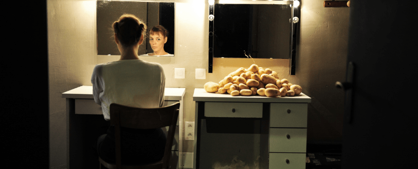 Seule en scène elle-aussi, auteure et interprète, Léonore Chaix nous fait craindre le pire, confessant tout de go qu’elle est Femme à qui rien n’arrive ! Au temps d’antan, bien avant la pandémie, en compagnie de sa complice Flor Lurienne, la comédienne nous avait déjà littérairement conquis avec son éloquent et désopilant « strip texte » Déshabillez-mots ! En fond de scène aujourd’hui, la loge du théâtre de la Girandole à Montreuil (93) faiblement éclairée et transformée en table de cuisine où trônent deux ou trois kilos de pommes de terre, au-devant une chaise seule et solitaire où siègent les peurs et fantasmes de la femme d’intérieur… Un texte totalement déjanté, mis en scène par Anne Le Guernec, où l’héroïne d’infortune doit faire face à des servitudes et démons bien contemporains : la banalité de tâches quotidiennes, frustrantes et répétitives, orchestrées par ordinateur devant lequel la volonté humaine a capitulé… Connectée à l’oncle Tati où l’humour le dispute à l’absurde, l’illustration philosophico-délirante d’une existence prétendument branchée et pourtant consumée de solitude.