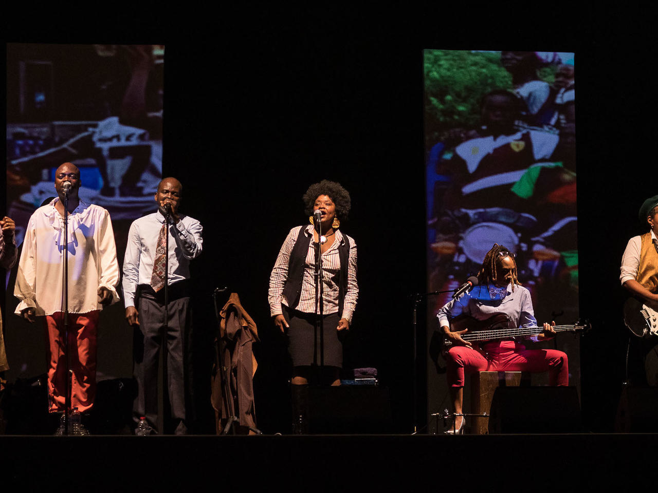 Durant plus de deux heures, c’est ambiance cabaret ! Une atmosphère survoltée mais régulièrement dynamitée par les propos de l’une ou l’autre sur les exactions de Léopold, petite couronne royale qui fit du Congo son gros bijou de famille. Un crime de masse, près de cinq millions de morts à la tâche selon certains historiens, les mains « nègres » coupées pour ceux qui ne récoltent pas dix kilos de caoutchouc par mois : un détail pour le monarque qui, fort du soutien des missionnaires, entend faire œuvre pieuse et convertir ces maudits « sauvages » à la civilisation ! Il y a de la rumba dans l’air, pas seulement avec les chansons et musiques de Franco Luambo jusqu’à l’emblématique et fameux Indépendance Cha Cha (1960) de Grand Kallé en passant par les titres incontournables de Papa Wemba.