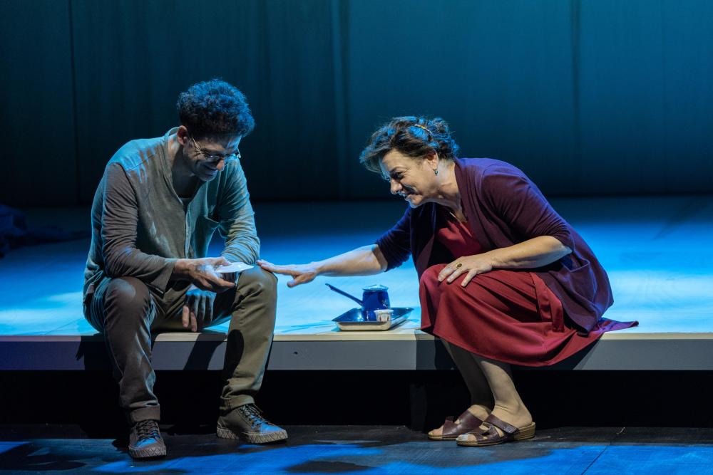 Sur le plateau de la Colline, outre Wadji Mouawad en manipulateur des objets du décor et fabuleux conteur d’histoires, surtout la présence de deux comédiennes libanaises à l’immense talent, fulgurantes de présence et de naturel : Aïda Sabra dans le rôle de la mère et Odette Makhlouf qui joue sa fille, la sœur aînée du futur metteur en scène… Des relations parents-enfants qui relèvent du tragi-comique, où la tendresse se glisse avec peine entre invectives et injures, colères irraisonnées et impératifs familiaux… Des scènes à l’humour féroce et communicatif, tel un « laisser respirer » pour le spectateur face au « laisser mourir » dont semble fatalement atteinte la mère : frappée d’une blessure trop vive, d’un sentiment d’abandon trop fort, d’un poids de solitude trop lourd. Le drame de l’exil porté à l’incandescence, une puissante réflexion sur la douleur du partir, un moment intense de bouleversante vérité. Yonnel Liégeois