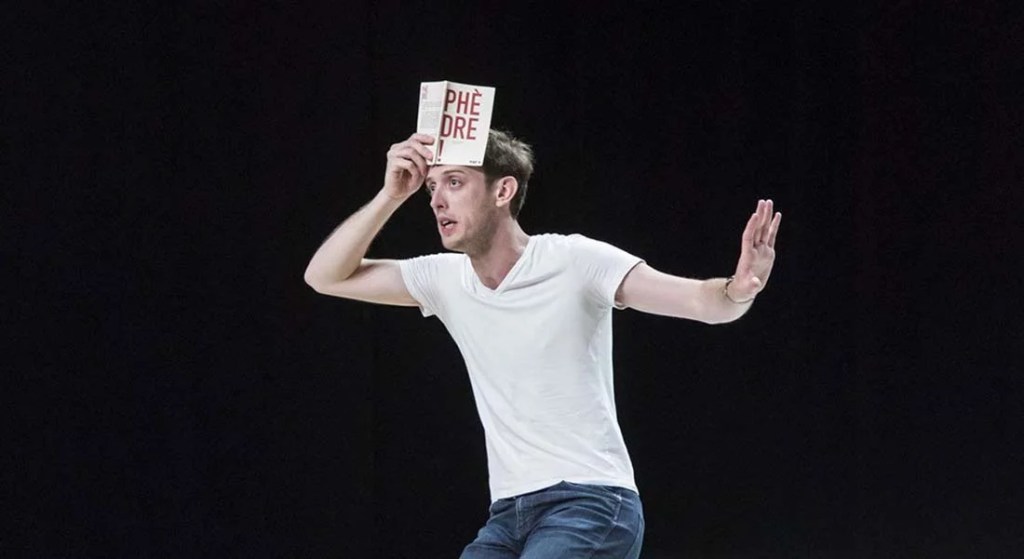 Après Phèdre ! superbement incarnée par le fantasque Romain Daroles, il y eut donc Giselle (aux trois points de suspension…), interprétée par Samantha van Wissen : non pas le fameux ballet écrit par Théophile Gautier, mais la pièce à l’humour acidulé de l’inénarrable helvète ! Accompagnée de quatre jeunes musiciens virtuoses (violon, harpe, flûte et saxophone), la danseuse et comédienne nous contait avec humour et grâce la genèse de ce fameux ballet créé en 1841, sommet de l’art romantique. Une performance de haute volée pour celle qui devait danser et parler sans jamais perdre le souffle, endosser tous les personnages de l’œuvre, dialoguer avec la musique et le public entre entrelacs et entrechats…
