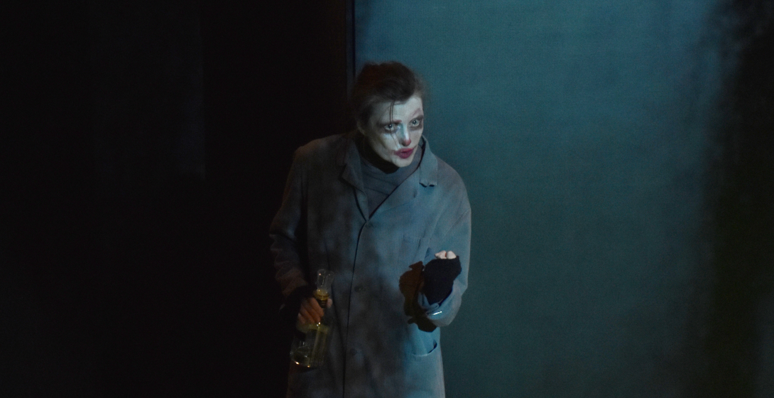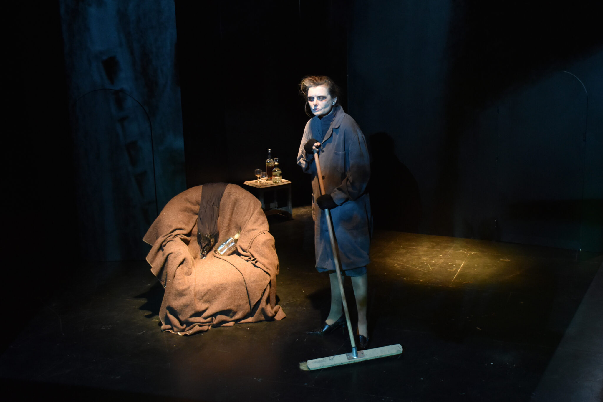 Laure Wolf endosse à elle seule le rôle de Joséphine. Celui de la narratrice et de ce peuple des souris qui se décline en souris obséquieuses ou râleuses, soumises ou contestataires, admiratives ou méprisantes… Elle est rentrée par les coulisses, s’introduisant dans ce qui pourrait aussi bien être la loge de l’artiste que la piste d’un cabaret. De sobres panneaux noirs sur lesquels seront projetés des images et dessins en noir et blanc (lumières d’Éric Fassa) vont créer une scénographie puissante et un espace de jeu qui ouvre à l’imaginaire et à l’émotion. Sans se grimer, avec juste une petite queue qui sort de son imperméable, par sa façon de se déplacer à petits pas sautillants, de s’avancer vers le public comme pour lui frotter le museau, elle est la servante ou l’alter ego de Joséphine, souris parmi les souris.
