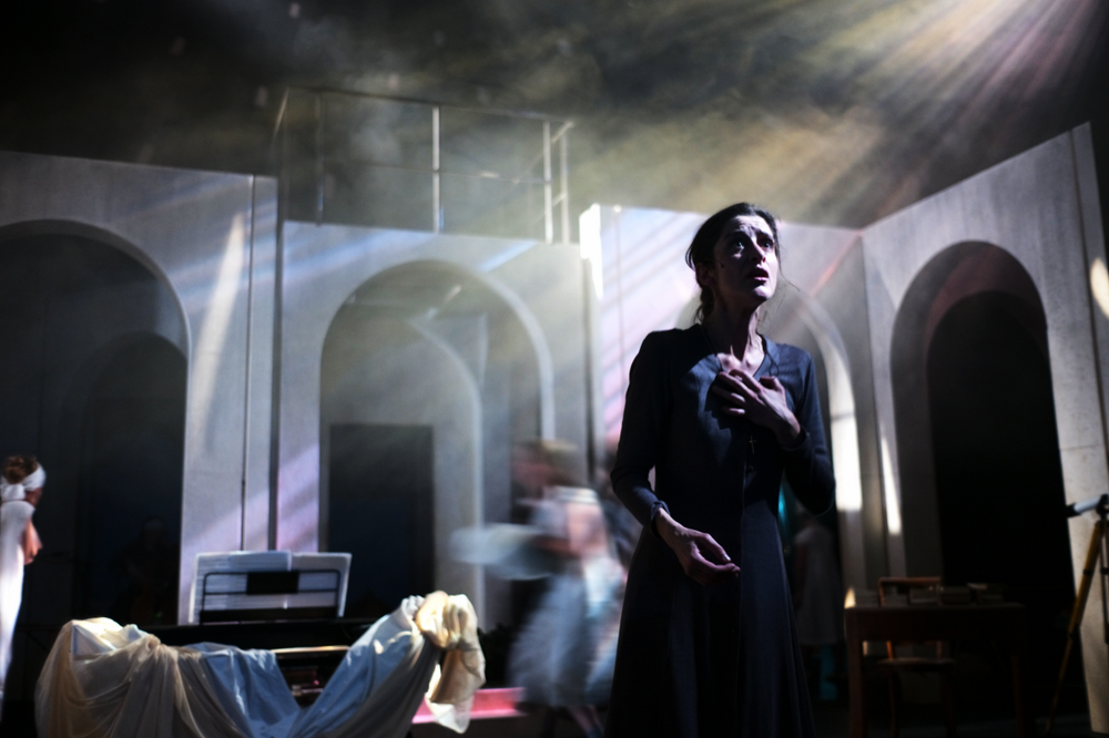 Sur la grande scène de la MC93, un imposant décor d’arches monumentales qui découpent les divers espaces de jeu, chambre-salon-dépendances… Un bel et majestueux agencement, à la taille de ce qui va se jouer à en perdre haleine : un siècle de l’existence d’une femme, symbole d’une incroyable fureur de vivre, d’un intarissable appétit d’amour et de liberté ! Modesta ? De l’enfant miséreuse à la princesse conquérante, bravant conventions sociales et tabous, une belle sicilienne qui cultive L’art de la joie comme manière d’être au monde et aux autres.