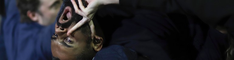 Présentée ensuite au Théâtre du Châtelet, la pièce se compose de cinq morceaux distincts, marqués par des musiques contrastées. En ouverture, Opus : les vingt-six interprètes se précipitent en grappe sur le plateau, chantant à l’unisson, a capella, les notes du deuxième mouvement de l’Opus 111 de Beethoven… Chœur désordonné, ils s’arrêtent et font silence, puis reprennent leur course et leurs « la la la » accompagnent cavalcades ou convulsions au sol… Un exercice vocal impressionnant que le chorégraphe a vécu avec Somnole, un solo magique d’un corps devenu musique. « Aux moments principaux de ce chanté-bougé où le souffle est étiré au maximum », dit-il, « la danse reste attachée à la voix tant qu’un peu de souffle nous reste ». Pendant les vingt minutes de Volée, les corps se balancent sur un concert de cloches. Sons profonds ou carillons allègres impulsent aux danseurs des mouvements saccadés et ils nous emportent dans leurs élans forcenés… Le chorégraphe a laissé libre cours à l’improvisation pour chaque artiste, comme pour les volets suivants. Dans Silence, les interprètes retrouvent leur concentration sur l’envoûtante partition pour orgue de Phill Niblock, jouée en direct par Jean-Baptiste Monnot. Ils nous offrent un beau moment d’intériorité en rupture avec la transe de Volée. Enfin, Toucher clôt ces 90 minutes, avec des figures acrobatiques et un joyeux amalgame des corps enfin rassemblés.