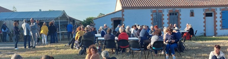 Comme à chaque étape de la tournée, une causerie autour de l’artiste précède le concert. Ici, elle est animée par les membres d’A.R.EX.C.PO. Il est question « la survie de la culture maraichine face à l’économie touristique ». Là où les « ébobés » demandent de la couleur locale, il faut proposer une culture vivante, loin de la caricature du paysan, dit Jean-Pierre Bertrand, l’un des fondateurs de l’association. « Pour qu’une culture existe sur un territoire, il faut de la création et non de la reproduction folklorique », acquiesce l’artiste : « I’est à vous de vous laisser crever ou pas ; si vous ne transmettez pas, vous êtes criminels, vous tuez votre langue ».