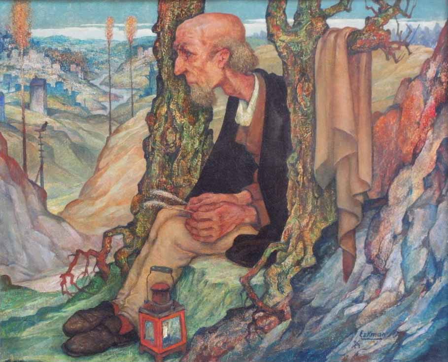 Observer une de ses toiles, c’est s’amuser à chercher partout, au premier plan, en fond de scènes, sur les côtés, des éléments parfois disparates et incongrus qui se glissent dans le motif principal et lui confèrent une tout autre dimension. Dans la première partie, on devine l’influence de Van Gogh, qu’il admire profondément. Ainsi, son huile sur bois « le Messager » évoque « les Mangeurs de pomme de terre » de Van Gogh. Les couleurs vives contrastent avec les traits rugueux des personnages. Eekman est un fin observateur. Ses paysans portent de gros godillots et trimballent d’énormes bottes de foin dans une campagne brillante de couleurs. Ainsi, sa « Folle moisson » ou « Gerbe folle » (1946) évoque Bruegel l’ancien, avec cet horizon barré par la silhouette massive du paysan qui laisse à peine entrevoir l’agitation des champs en arrière-plan. Quant au « Quatuor de la zone » (1945), le tableau, le jeu des lumières est une référence explicite à « la Parabole des aveugles » de Bruegel.
