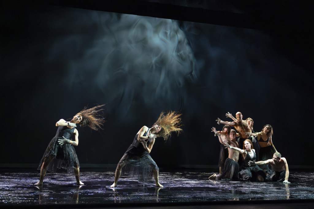 Blanca Li y revient pour donner le premier rôle à la danse, à la fluidité des corps en mouvement, en adéquation parfaite avec la musique de Henry Purcell. Adéquation parfois presque trop parfaite, voire illustrative… D’ailleurs, le premier tableau en est une synthèse, les dix danseurs jouant la partition sans instruments. Les séquences se suivent, enlevées par une troupe exceptionnelle de danseurs vibrants et habités d’une respiration lancinante qui, par leur énergie, nous entraînent dans cette osmose entre partition et danse, jumelles de virtuosité. On est saisi par un contrejour soleil couchant d’un statuaire sculptural évoquant la Grèce antique. Ne manquait que la Méditerranée, lieu de toutes les tragédies mythologiques : la voici, avec de l’eau déversée sur le sol recouvert d’un vinyle noir. Les corps glissent comme on glisse dans la passion, les amours s’en vont et s’en viennent au fil de l’eau. L’idée scénographique est très belle mais son exploitation, un peu longue, lasse jusqu’à un beau final somptueusement glissé.