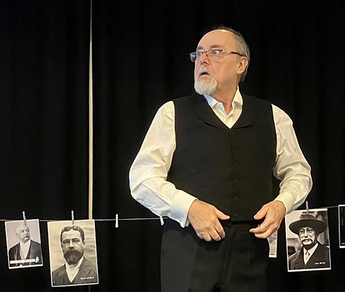 Celle d’un homme à la barbe blanchie, au ventre joliment rebondi, au chapeau bien arrondi et au poing solidairement brandi… Qui se prétend Jaurès et l’invite à jouer son personnage, d’une toute autre envergure que ses piètres rôles de composition ! Une voix insistante, au point que le comédien en mal de reconnaissance endosse au final le costume de l’emblématique tribun. Avec force persuasion, il se mue en conteur du parcours familial et philosophique, social et politique, de l’incontournable défenseur de la cause du peuple, de l’infatigable souteneur de la lutte des ouvriers, de l’inoubliable orateur à la parole républicaine ! De Toulouse à Paris, résonne alors l’accent du midi.