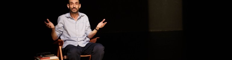 Après avoir tourné pendant des années avec Ça ira, Fin de Louis, de Joël Pommerat, Éric Feldman est confronté aujourd’hui à la solitude du plateau, mais il a su trouver une belle complicité avec le public, qu’il balade entre rire et émotion. On entend, au-delà de cette autofiction, l’histoire des victimes collatérales des guerres et génocides. Sans prendre part aux polémiques actuelles sur le conflit israélo-palestinien et sur les questions d’antisémitisme telles qu’elles sont dévoyées aujourd’hui, le spectacle, dépassionné et profondément humaniste, traite des traumatismes profonds causés par tout crime de masse. Mireille Davidovici, photos Patrick Zachmann