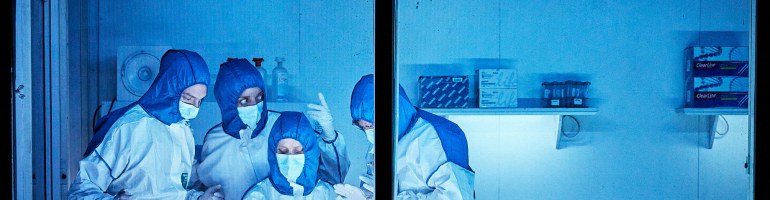Pour l’équipe de chercheurs, partagée entre recherches sur le terrain et analyses en laboratoire, le travail est laborieux. Trouver les financements d’abord, s’associer pour le prestige aux grandes universités américaines, surmonter les conflits d’amour-propre et d’amours controversés entre membres de la bande, affiner collectivement les résultats de la recherche en dépit de moult conflits internes … D’où les situations ubuesques qui jalonnent le spectacle, entre disputes conjugales et palabres génétiques, n’effaçant en rien la question fondamentale : qui possède le gène premier entre Néandertalien et Homo Sapiens ? Pour Rosa, l’une des chercheuses dont la famille a fui les pogroms nazis et s’est réfugiée en Israël, la quête n’est en rien anodine : la peur au ventre, elle s’informe régulièrement sur l’évolution du conflit qui oppose Palestiniens et citoyens de Tel Aviv ou Jérusalem. Par images interposées, le metteur en scène nous replonge alors dans les tentatives de paix entre Ytzhak Rabin et Yasser Arafat, sur cette chance historique où chacun reconnaît alors à l’autre le droit de vivre. En dépit de la campagne haineuse fomentée par Benyamin Netanyahou, alors chef du Likoud, qui conduira à l’assassinat de Rabin.