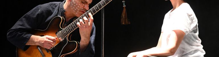 Dès les premiers mots, Cécile Gargia Fogel nous entraîne dans cette prose bousculée, à l’instar de la réalité violente des temps présents : « “le risque zéro/ça n’existe pas »/ une femme aurait traversé les barrages/avec une arme à/feu/dans son sac/des scénarios de détournement d’avion de prise d’otages de/ gaz toxiques dans le métro ont été testés/mais/ »le risque zéro ça/n’existe pas ». Elle est cet individu qui traverse des paysages incendiés, bombardés, à la recherche d’un territoire encore vierge (le Sahara d’antan, couvert le lacs)… Dans d’héroïques cavalcades ou sur des tempos plus apaisés, sa voix épouse cette écriture de l’urgence construite en boucles successives. En dialogue avec sa rage et ses coups de gueule, ses indignations ironiques, ses fatigues passagères, ses repos de la guerrière, ses mélopées envoûtantes, la guitare de Pierre Durand joue une partition heurtée à la manière de la prose : tantôt jazz, tantôt riffs discordants, tantôt larsen, tantôt silences.