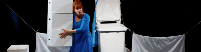 Auteure, metteure en scène et interprète, directrice artistique du Local des autrices (75), Sarah Pèpe se joue des mots pour nous dépeindre une réalité sociale qui, aujourd’hui, touche une bonne part de nos concitoyens : la précarité, la pauvreté qui frappe tout un chacun. Pour un accident de la vie, une maladie, une séparation, une dépression… Surtout dans un monde où le luxe s’affiche à toutes les devantures, où la publicité vend du bonheur sur tous les écrans, où l’argent des uns nargue sans vergogne le peu de moyens des autres. Ni pathos ni prise de tête sur scène, mais une folle énergie et force humour : une vraie poubelle, quatre épingles à linge et deux bouts de drap blanc, un puissant ventilateur pour imager le vent de folie qui bouscule sa vie, la mère de famille refuse de sombrer ! Dans une mise en scène minimaliste et un espace confiné, un sursaut de dignité qui éclate dans une explosion de sons et lumières.