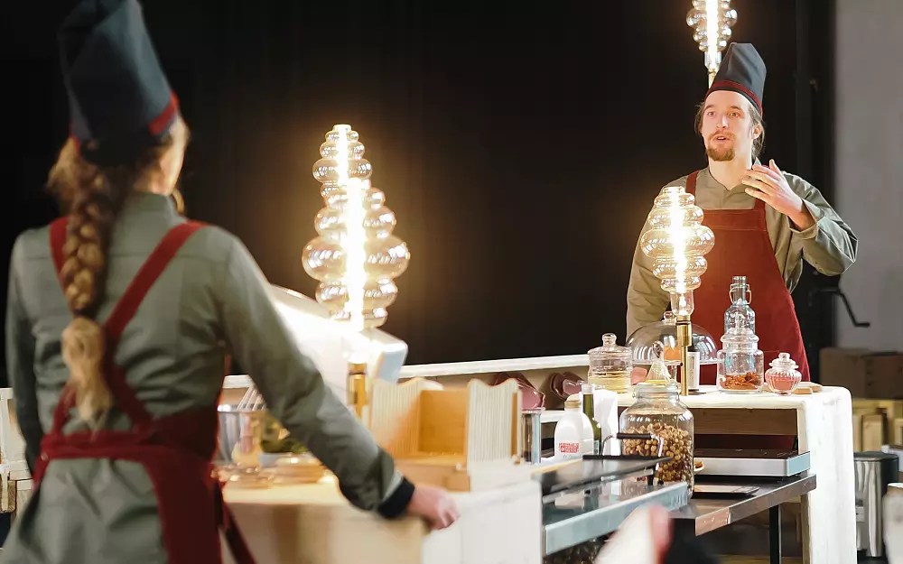 Sous l’égide de la Scène nationale de Maubeuge (59), en l’atelier Renaissance, la compagnie Dérézo présente Par les bouches. Un spectacle atypique pour quelques convives privilégiés, où se mêlent senteurs des mets et parfums des mots. Un buffet pour gourmets et gourmands, entre saveurs gastronomiques et plaisirs littéraires.