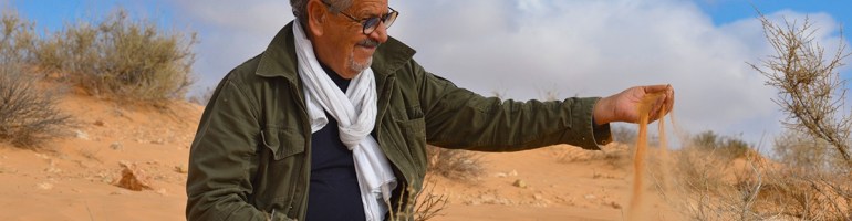 Enfant des sables, natif de Tataouine en Tunisie et fils de la tribu Daghari, Abdallah Akar a vécu sa jeunesse entre dunes et pâturages. Berger de chèvres et moutons, comme tous les gamins de son âge la vie de semi-nomade fut son école : la beauté des paysages, la grandeur du désert, la découverte des mystères de la nature. Son plaisir pour vaincre l’ennui de longues journées à surveiller les bêtes ? Pister les traces des serpents et gerboises, les capturer… « Une enfance simple, agréable, avec l’essentiel pour vivre : figues, sucre, sel et piment », témoigne l’artiste.
