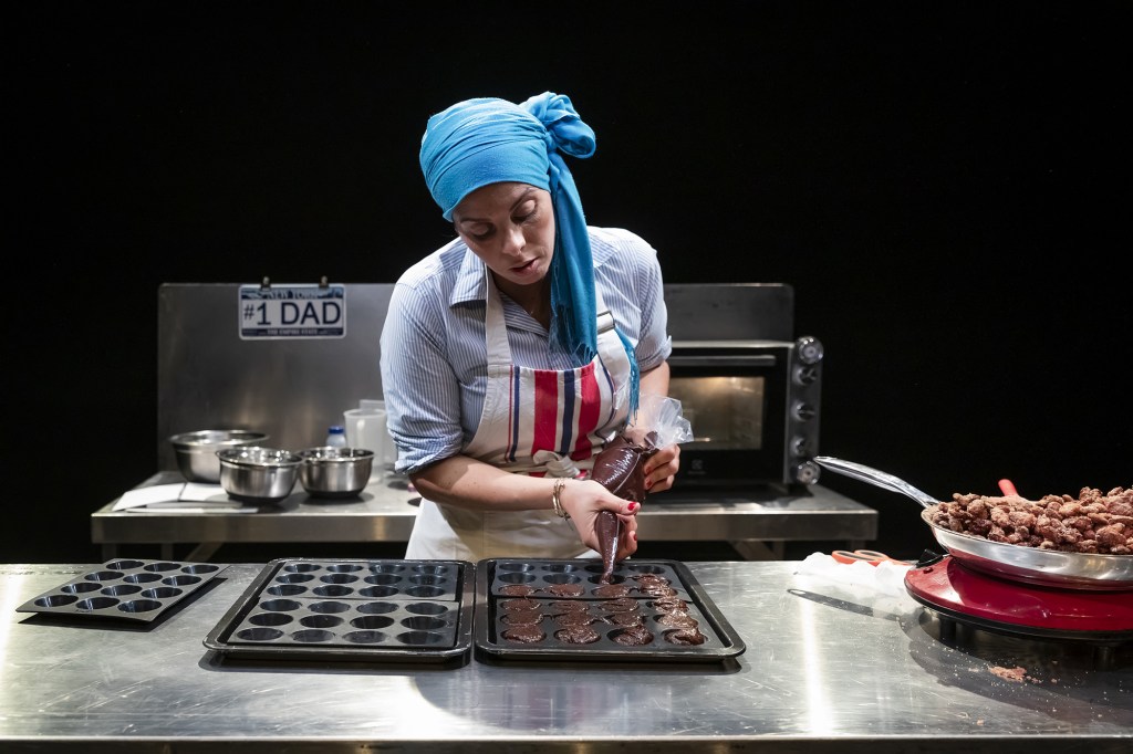 Le metteur en scène et la comédienne accueillent les spectateurs à l’entrée de la salle du Théâtre de Belleville. On les retrouve à la fin, à la même place : ils distribuent les pralines et les petits fondants au chocolat qu’a concoctés la « comédienne » durant le spectacle. Une heure trente durant, on l’a écoutée. Et parfois Ahmed Madani lui-même, qui est là, côté cour du plateau, derrière un bureau et un ordinateur.