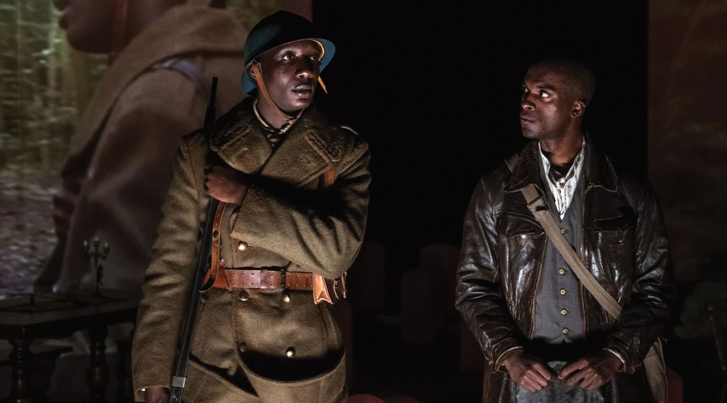 Il est souvent malaisé de faire Histoire sur les planches d’un théâtre. Parcours didactique, prise de tête, accumulation de propos autorisés et bienséants, litanie de leçons plus ou moins moralisantes… Avec tact et talent, l’auteure et metteure en scène Eva Doumbia, fille d’une mère normande et d’un père malinkè, évite le piège. Hommes et femmes prennent chair, sang et sens sur le plateau, la chronologie est bousculée, palabres entre frères africains et dialogues entre les membres des familles autochtones s’entrechoquent, les doutes des uns avec la frayeur des autres. La suspicion et la crainte à l’égard de ces soldats à peau noire sous treillis aux couleurs nationales s’entremêlent dans la conscience d’aucuns qui leur témoignent pourtant fraternité et solidarité. L’inconnu, ici comme ailleurs, hier comme aujourd’hui, fait peur.