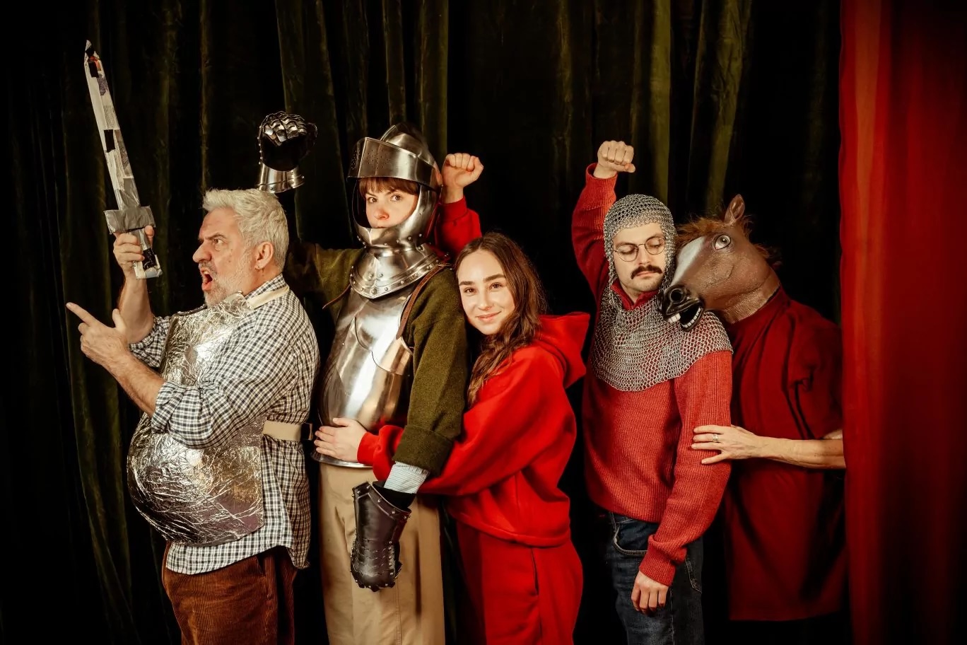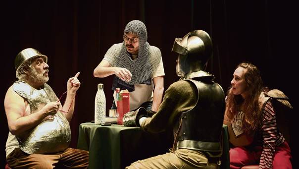 C’est dans la maison familiale que se déroule toute l’action. La scénographie de James Brandily le permet avec aisance, c’est là que Papy peut gentiment délirer. Certes, il perd la boule, par moments, et même souvent. Sagement, il lit Miguel de Cervantes, et plus précisément le roman le plus célèbre de l’écrivain espagnol, publié en 1605, L’Ingénieux Hidalgo Don Quichotte de la Manche, communément appelé Don Quichotte. Papy, joliment interprété par Dominique Parent file au salon pourfendre les moulins à vent qu’il prend pour des géants guidés par des magiciens maléfiques. Géants qui ne sont ici qu’un ventilateur. Toute la famille se prend au jeu, enfile cotes de mailles et s’harnache d’accessoires. Le cheval Rossinante n’est pas loin, des oiseaux animés par Geraldine Zanlonghi passent dans le ciel, ajoutant une note de poésie en un temps qui regarde la vieillesse avec une bienveillance apaisante. Gérald Rossi, photos Christophe Raynaud de Lage