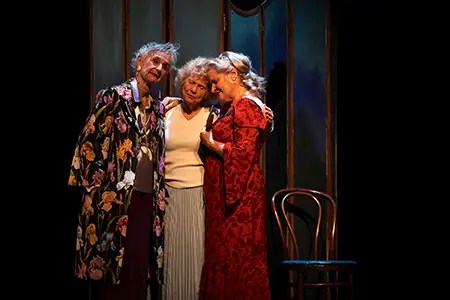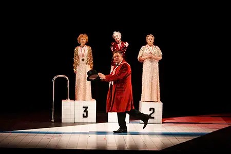 Lisa Wurmser (Cie de la Véranda) a écrit et mis en scène Nage libre. À Vienne, Autriche en 1995, trois femmes se retrouvent au cabaret L’Enfer, après plus d’un demi-siècle d’exil. Il s’agit de nageuses juives autrichiennes, privées de leurs titres pour avoir refusé de participer aux jeux Olympiques de Berlin en 1936. Vienne doit les honorer en restituant leurs médailles. Un mystérieux maître d’hôtel les accueille… C’est une comédie enlevée autour d’un sujet tragique. Les dialogues sont vifs, semés de saillies humoristiques. On songe à l’esprit impayable de Billy Wilder, cité en passant, juif viennois qui fit des étincelles à Hollywood. Trois actrices d’instinct et de métier sûr (Flore Lefebvre des Noëttes, Francine Bergé, Bernadette Le Saché), chacune dans son registre, mènent le bal des mots dits avec brio.