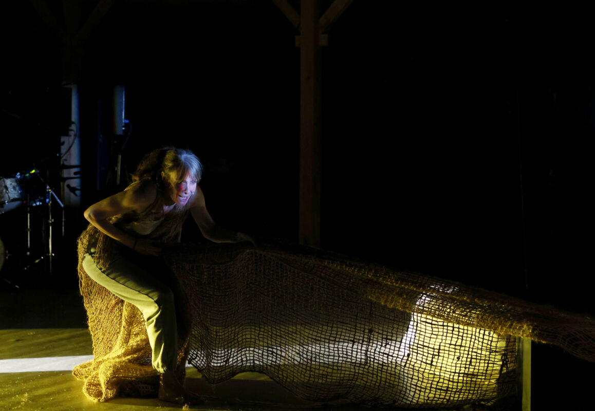 Enfants assassinés, têtes coupées, vieillards sortis de leur lit… Proférés avec force et sanglots, les mots sonnent prémonitoires, comme en résonnance avec une actualité brûlante. Juchée sur ce qui s’apparente à un tas d’immondices, vieux sacs et vieux papiers, Marie Payen a troqué la longue tunique d’une éclatante blancheur plastique de Perdre le nord, son précédent spectacle, contre une piteuse traîne en jute d’un marron délavé. D’une antique danse des mots émouvante et percutante, la comédienne se fait désormais récitante d’un poème improvisé, clocharde sur les berges de Seine ou d’ailleurs, l’oreille toujours attentive aux paroles de plus miséreux et miteux, le fou rencontré sur un quai de RER ou l’homme des cavernes égaré au fin fond de la campagne hexagonale. Entre les roulements et battements du percussionniste Raphaël Chassin, la langue hoquète, les mots s’entrechoquent et se percutent en sortir de gorge. La plainte monte des profondeurs du ventre et tente obstinément de se frayer un passage : le temps présent s’est fait ténèbres, La nuit c’est comme ça, des maux aux mots la parole est vertige sans fond !