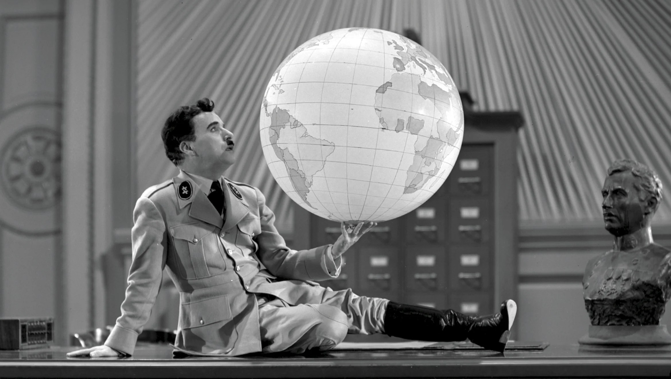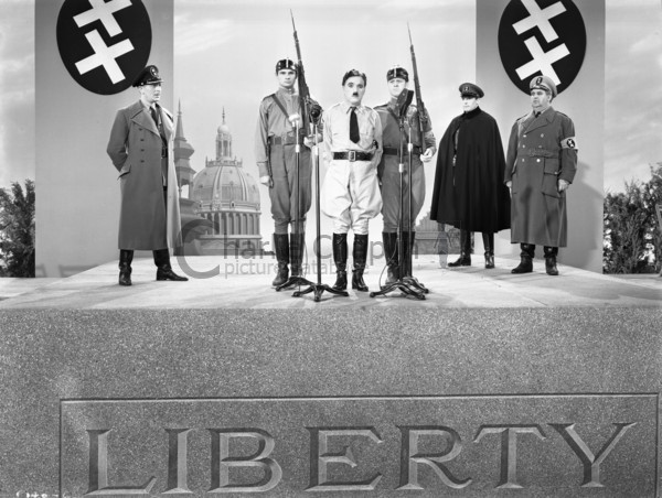 Ces brutes vous ont promis toutes ces choses pour que vous leur donniez le pouvoir – ils mentent. Ils ne tiennent pas leurs promesses – jamais ils ne le feront. Les dictateurs s’affranchissent en prenant le pouvoir mais réduisent en esclavage le peuple. Alors, battons-nous pour accomplir cette promesse ! Il faut nous battre pour libérer le monde, abolir les frontières et les barrières raciales, en finir avec l’avidité, la haine et l’intolérance. Il faut nous battre pour construire un monde de raison, un monde où la science et le progrès mèneront vers le bonheur de tous. Soldats, au nom de la Démocratie, unissons-nous ! Charlie Chaplin