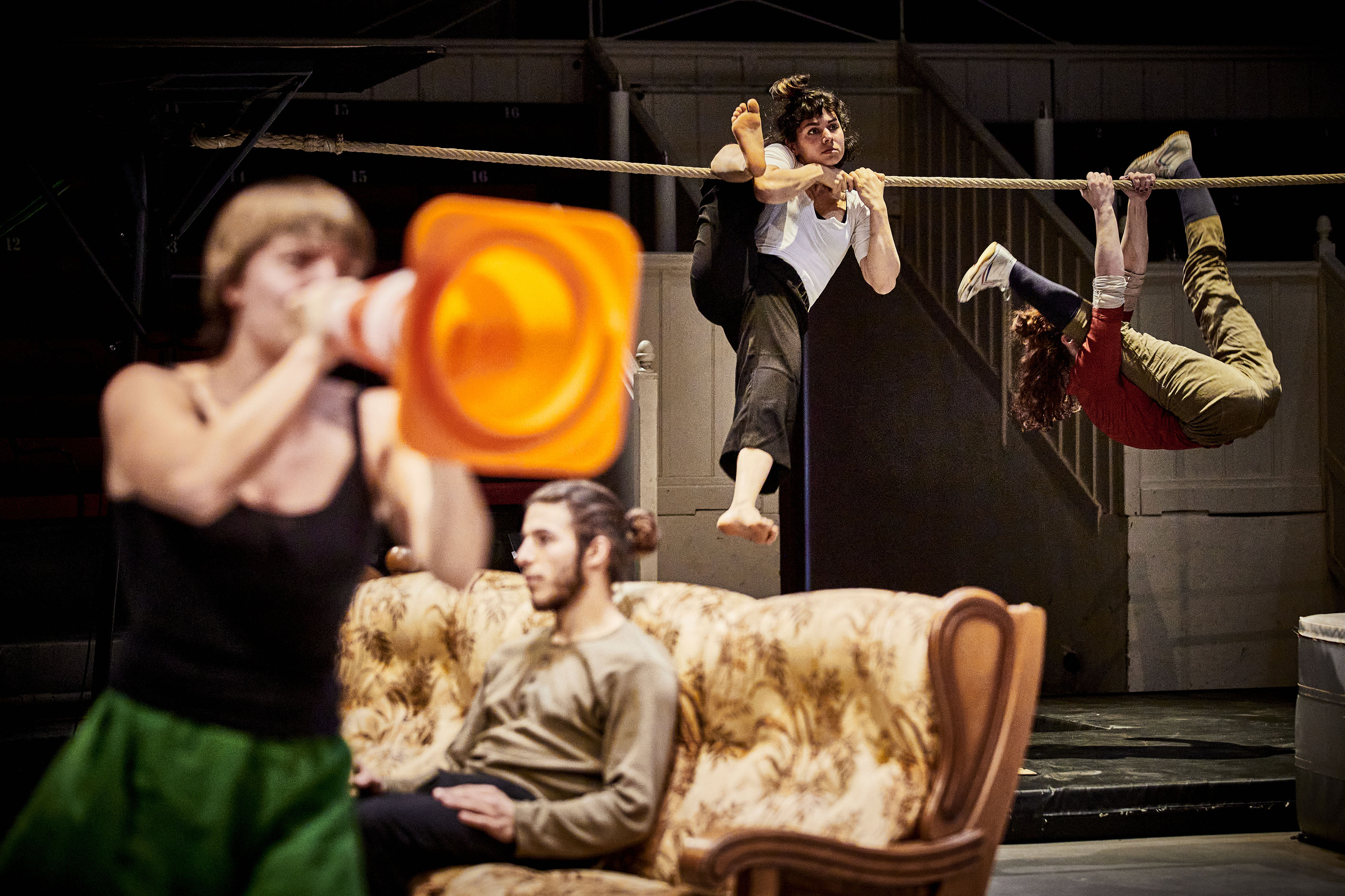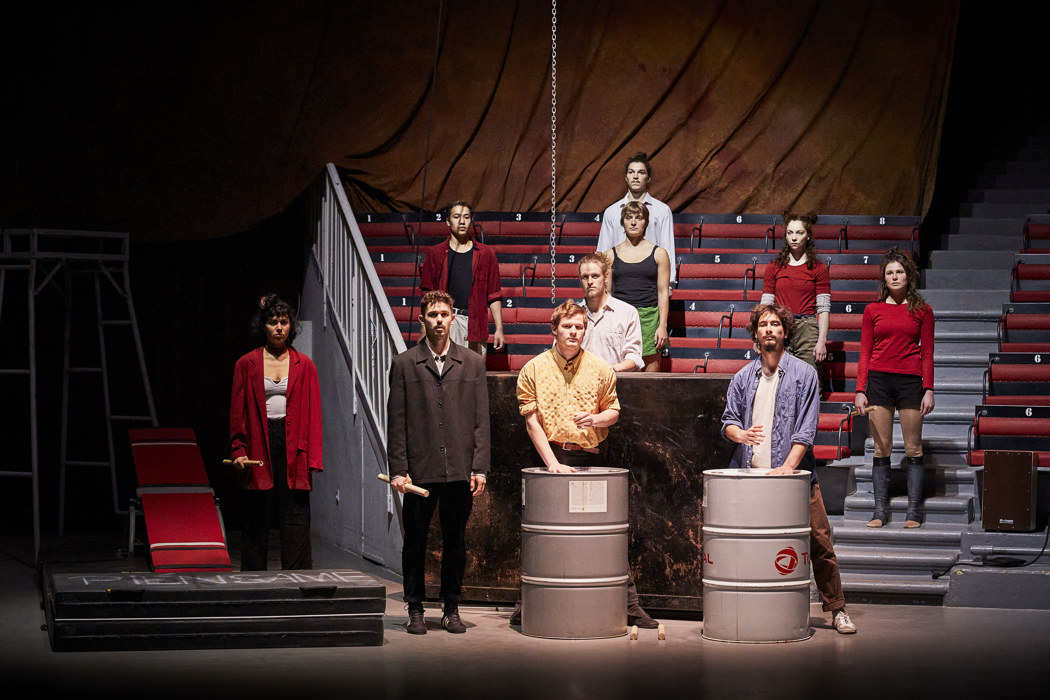 C’est pour nous qu’il l’a mis en scène en 1997, avec la 9ème promotion des étudiants du Centre national des arts du cirque, C’est pour toi que je fais çà ! que Guy Alloucherie reprend 25 ans plus tard avec les élèves de la 34ème promotion du CNAC… Un spectacle détonant, délirant pour cette re-création devenue un classique des arts du cirque ! La bande d’artistes-comédiens circassiens s’en donnent à cœur joie, entre humour et paranoïa, entre numéros individuels et collectifs, où chacune et chacun dévoilent leurs talents sans retenue. Des fûts pour tambour, un canapé poussiéreux , du trapèze et de la voltige, des engins traditionnels de la piste aux nouvelles figures théâtrales, un spectacle total conduit à grande vitesse, sans temps mort ni baisse de régime. époustouflant, à applaudir sans commune mesure à Culture Commune !