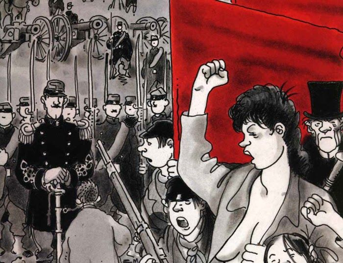 Dans les manifs, les barricades changent parfois de camp mais les slogans taquinent toujours les clins d’œil : « Moins de Jean-Michel, plus de Louise Michel ! », « Élisez Reclus ! », « Ni Macron, ni personne. Vive la Commune ! ». On la porte en bandoulière pour défendre les retraites, l’assurance chômage, les services publics, on l’exhibe sur des gilets jaunes, on la passe sur les sonos… Pendant ce temps-là, certains défilent en tee-shirt orange ou en bleu-blanc-rouge pour défendre la sacro-sainte famille ou les frontières. Parfois – signe que les boussoles déconnent pas mal – en faisant de l’œil à l’oncle Picsou, à l’image du troupeau d’identitaires défilant à Paris en casquettes siglées « Make America Great Again » le 20 février 2021. Est-ce que leurs foudres, si elles voyageaient dans le temps, se dirigeraient contre les membres de l’Association internationale des travailleurs qui sautaient les frontières allègrement ? Sans doute…