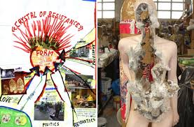 Juste avant un dessin colorié de Thomas Hirschhorn, « Crystal of resistance. 2011 » : « LOVE (acte symbolique) POLITICS (courage devant le puissant) AESTHETICS (esthéticiennes) PHILOSOPHIE (refus critique). Il y aussi la conviction, la précarité, l’urgence ». Suit alors une citation du Manifeste du Parti Communiste : « Tout ce qui était solide et stable est ébranlé, tout ce qui était sacré est profané, et les hommes sont forcés, enfin, d’envisager leurs conditions d’existence et leurs relations réciproques avec des yeux dégrisés… ».