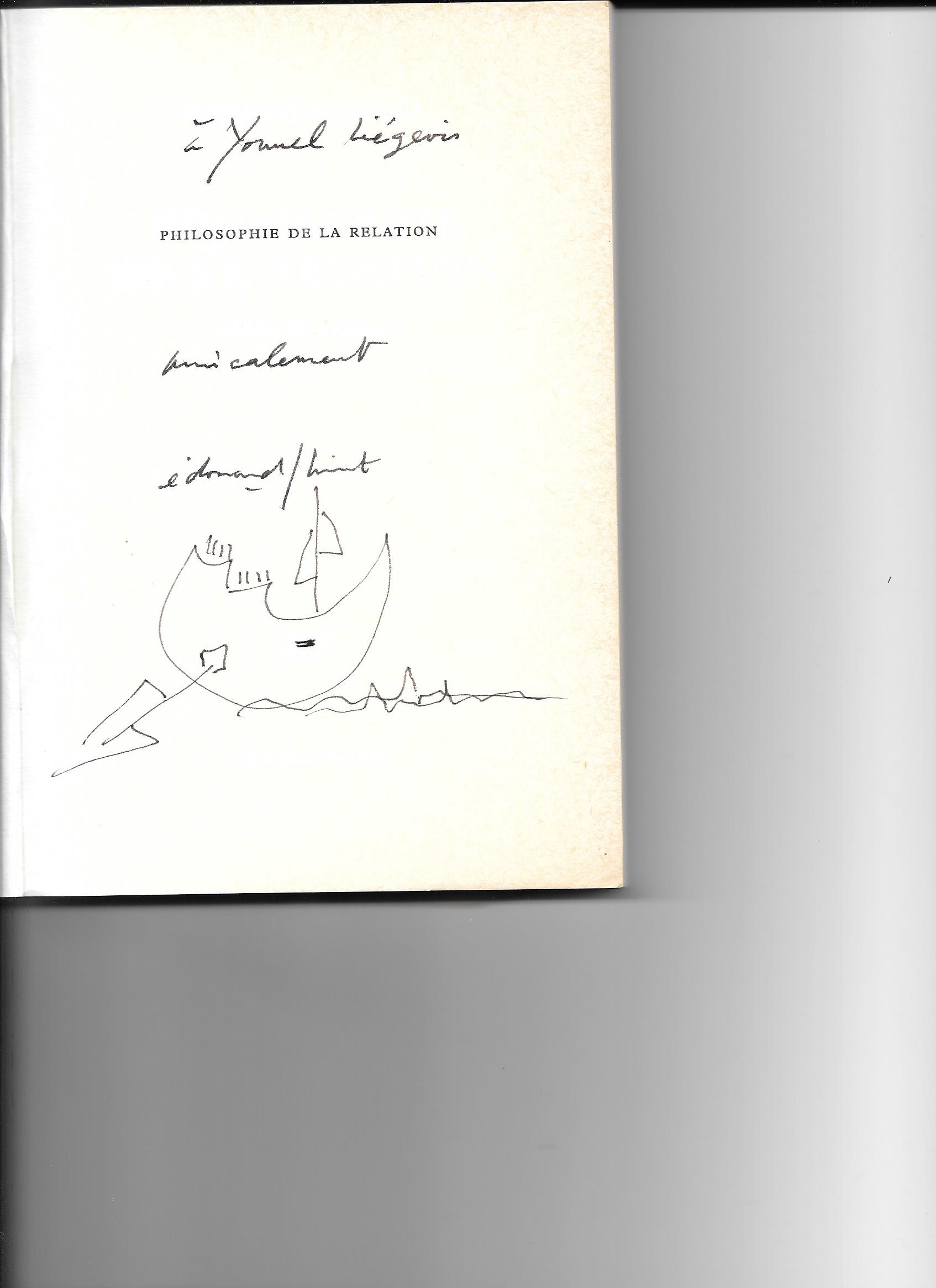 Dans la foulée, un ami qui me veut du bien, m’interpelle un soir. Je résume et schématise : « Édouard Glissant, ethnologue-romancier-philosophe-poète antillais et citoyen français, serait-il vraiment un fils de gaulois, selon le propos de Nicolas Sarkozy ? ». Je le rassure et lui suggère la lecture de Philosophie de la relation, le dernier ouvrage de Glissant publié de son vivant. Que je m’empresse d’aller feuilleter de retour chez moi, et de redécouvrir, oubliée depuis, une dédicace de l’auteur en page de garde lors de notre rencontre pour un long entretien : outre sa sympathie pour le grand journaliste que je suis – si, si, croyez-moi, il y a prescription -, le dessin naïf d’un navire en mer !