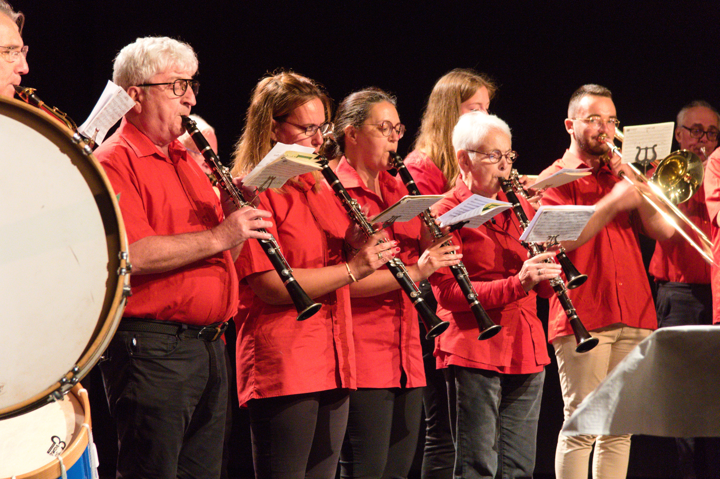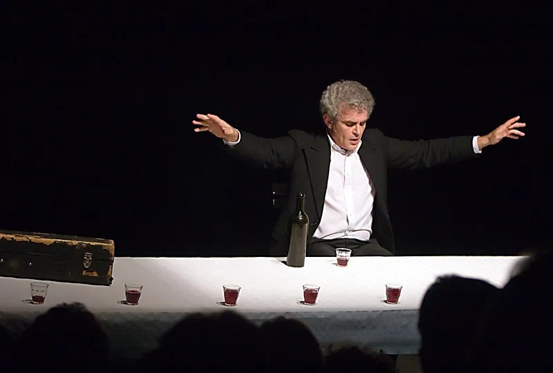 Une grande table à la nappe blanche, quelques verres de bon rouge posés de-ci de-là, d’autres en attente d’être remplis : à n’en point douter, la soirée sera bien arrosée ! D’un concert l’autre, de pause en pause, l’évidence s’impose : outre un gosier souvent à sec, ils ont la descente facile, les membres de la fanfare de Chauvigny ! Ce n’est point un souci pour le chef de l’harmonie municipale. Son exigence première ? « Vous faîtes ce que vous voulez pendant le morceau, mais à la fin on s’arrête tous en même temps », les adjure-t-il ! Depuis la représentation du spectacle au festival d’Avignon en 1994, le temps a filé, crinière et barbe blanches désormais, Jean-Pierre Bodin n’a pourtant rien perdu de sa verve enjouée. Ni les souvenirs de sa jeunesse poitevine quand lui-même, sax alto au bec, déambulait dans les rues de Chauvigny (chef-lieu de canton, département de la Vienne, 7000 habitants) et jouait de concert, chaque 11 novembre, devant le monument aux morts… Une histoire fort patriotique, mais quelque peu éthylique entre fausses notes et vraies chienlits, dont il nous narre l’épopée collective à grandes rasades de rire. Pour fêter son trentième anniversaire, après plus de 1000 représentations à guichet fermé, le spectacle s’était posé en son lieu de création : le théâtre Charles Trenet de Chauvigny ! Un succès jamais démenti, c’est encore et toujours avec bonheur que le public trinque à cette randonnée musicale et langagière !