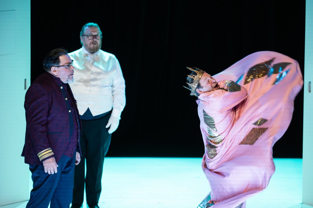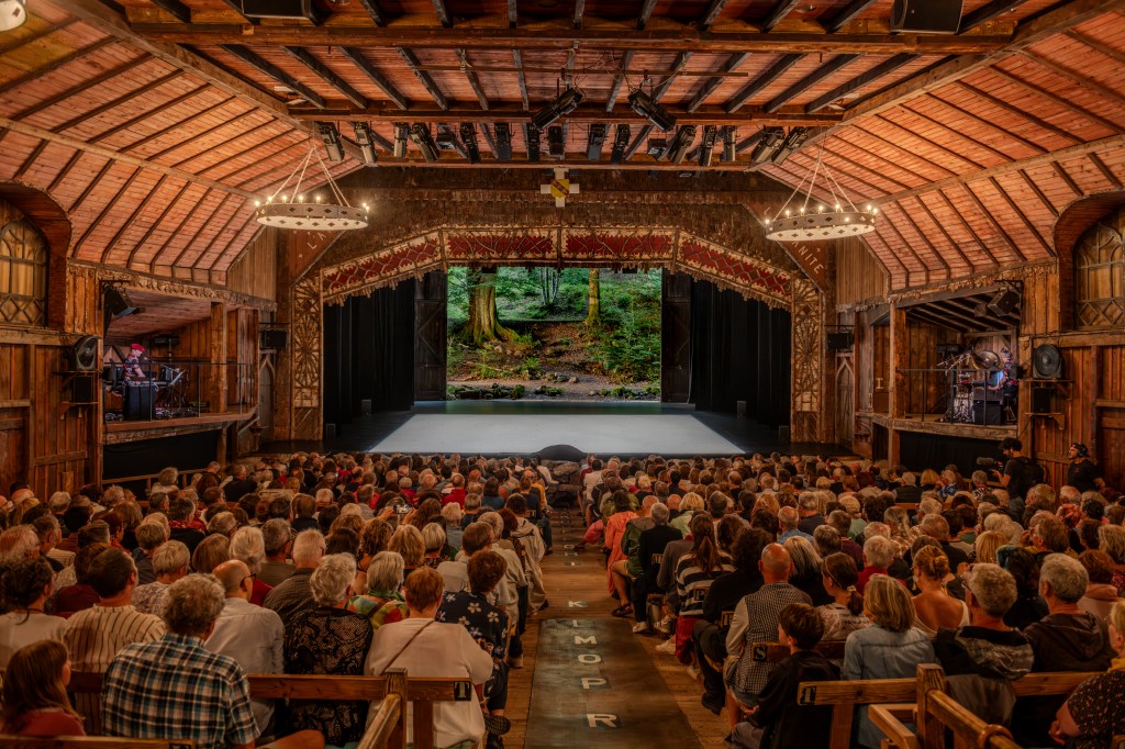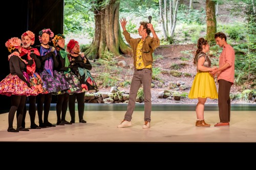 Au Théâtre du Peuple, à Bussang (88), Sylvain Maurice présente Le roi nu d’Evguéni Schwartz à l’affiche du 130ème anniversaire de ce lieu emblématique. Sous couvert de bouffonnerie, une impitoyable satire du despotisme aux accents fort contemporains. Dans une mise en scène détonante, mêlant comédiens professionnels et amateurs.