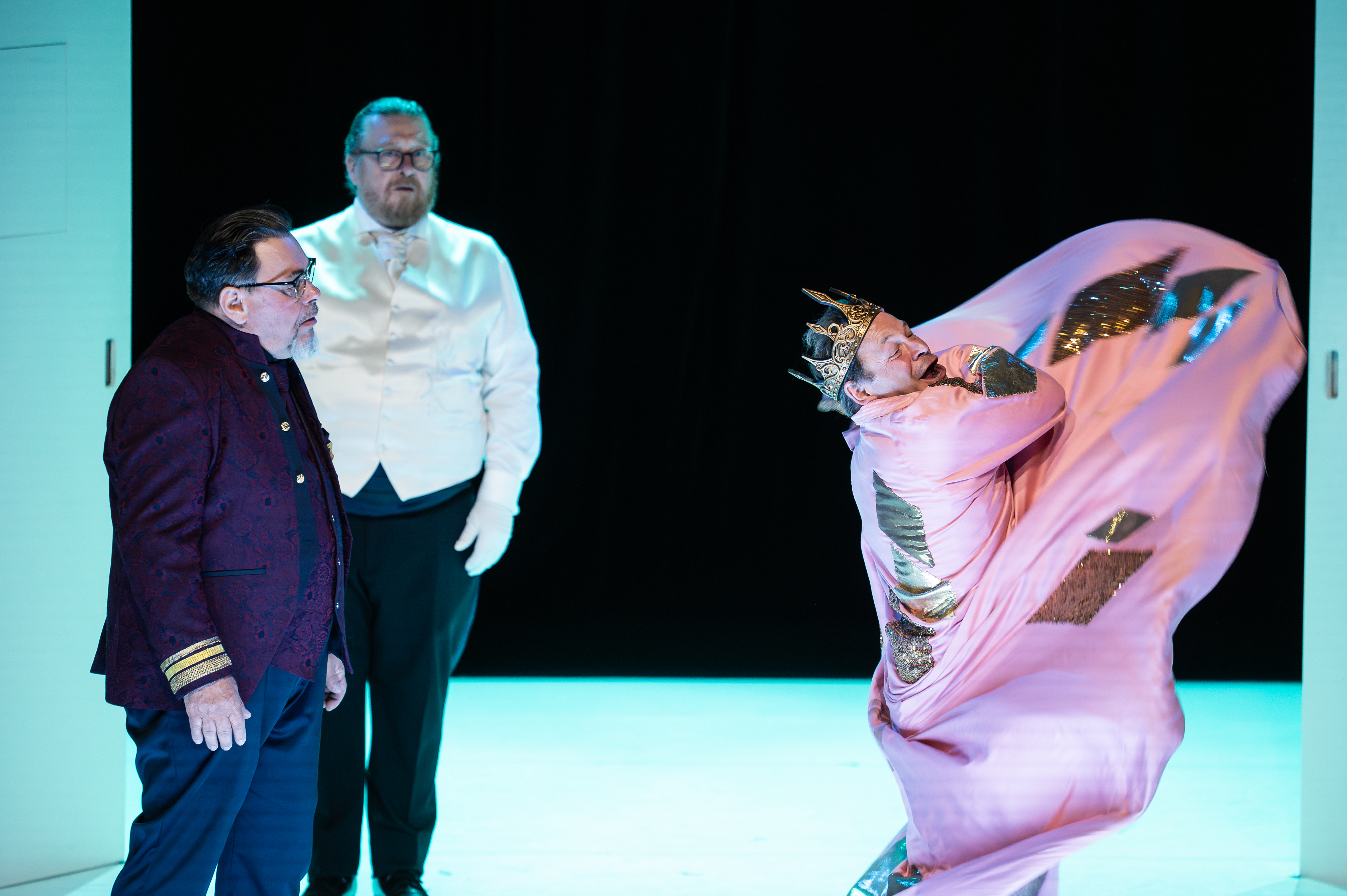 Comédiens professionnels et amateurs, dans un bel ensemble, s’en donnent à cœur joie. De Denis Vemclefs, l’ancien directeur des affaires culturelles de la ville de Montreuil (93) désormais à la retraite au flamboyant et inénarrable Manuel Le Lièvre dans le rôle-titre… Un véritable esprit de troupe qui explose de talent à l’ouverture des lourdes portes du fond de scène, selon la tradition du Théâtre du Peuple : la beauté de la forêt vosgienne, chemin de fuite pour le roi déchu ! Où l’on pourrait écrire sur une banderole accrochée aux branches « toute ressemblance avec des personnages existants ou ayant existé n’est pas coïncidence fortuite », tellement le propos de Schwartz est prémonitoire : Bolsonaro, Poutine, Trump…