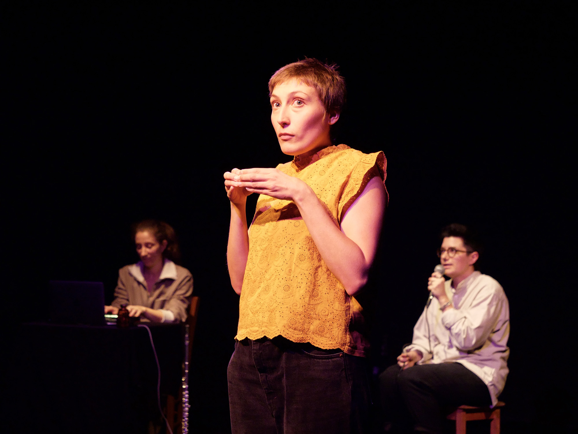 Au théâtre 11-Avignon (84), Morgan.e Janoir présente L’ouvrir. Un trio de femmes, interprètes et musicienne, pour narrer avec humour et sensibilité les choix de vie de chacun, libérer la parole de chacune. Une invitation au public à assumer préférences et engagements.