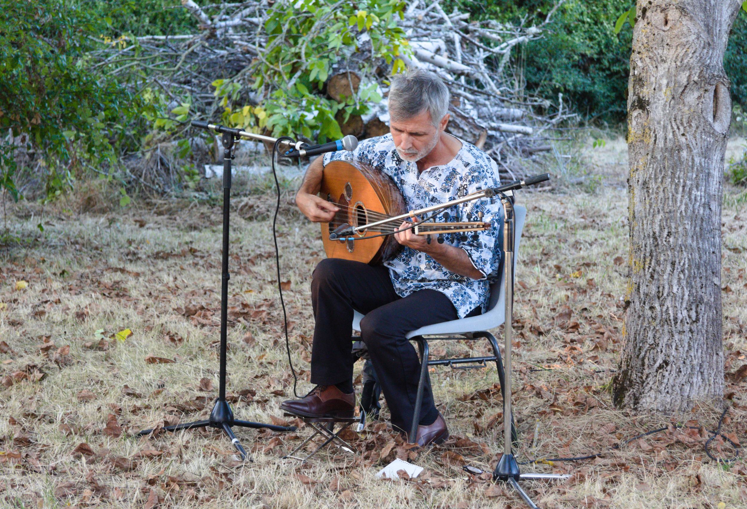 Le dimanche 31/08 : L’auberge espagnole à 13h, où chacune et chacun apportent ses meilleures quiches, salades, tartes salées ou sucrées, gâteaux. Le bar sera ouvert… Récital à 15h, dans le jardin : musicien et compositeur, le syrien Hassan Abd Alrahman se consacre à l’oud depuis l’âge de 16 ans. Il a étudié la musique traditionnelle du Moyen Orient à Alep. Son style de musique ? Le jazz oriental !