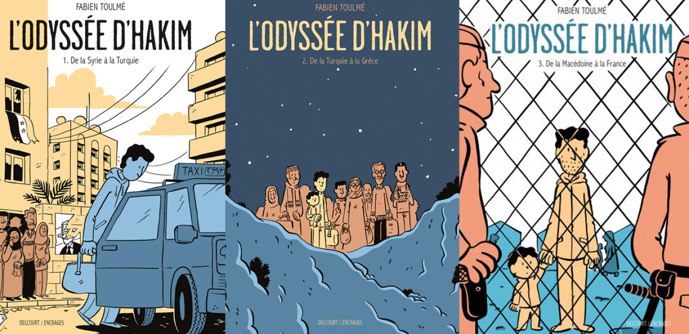 L’Odyssée d’Hakim, un roman graphique de Fabien Toulmé (éd. Delcourt, trois volumes. De 264 à 280 p. selon chaque tome, 24€95 chacun)