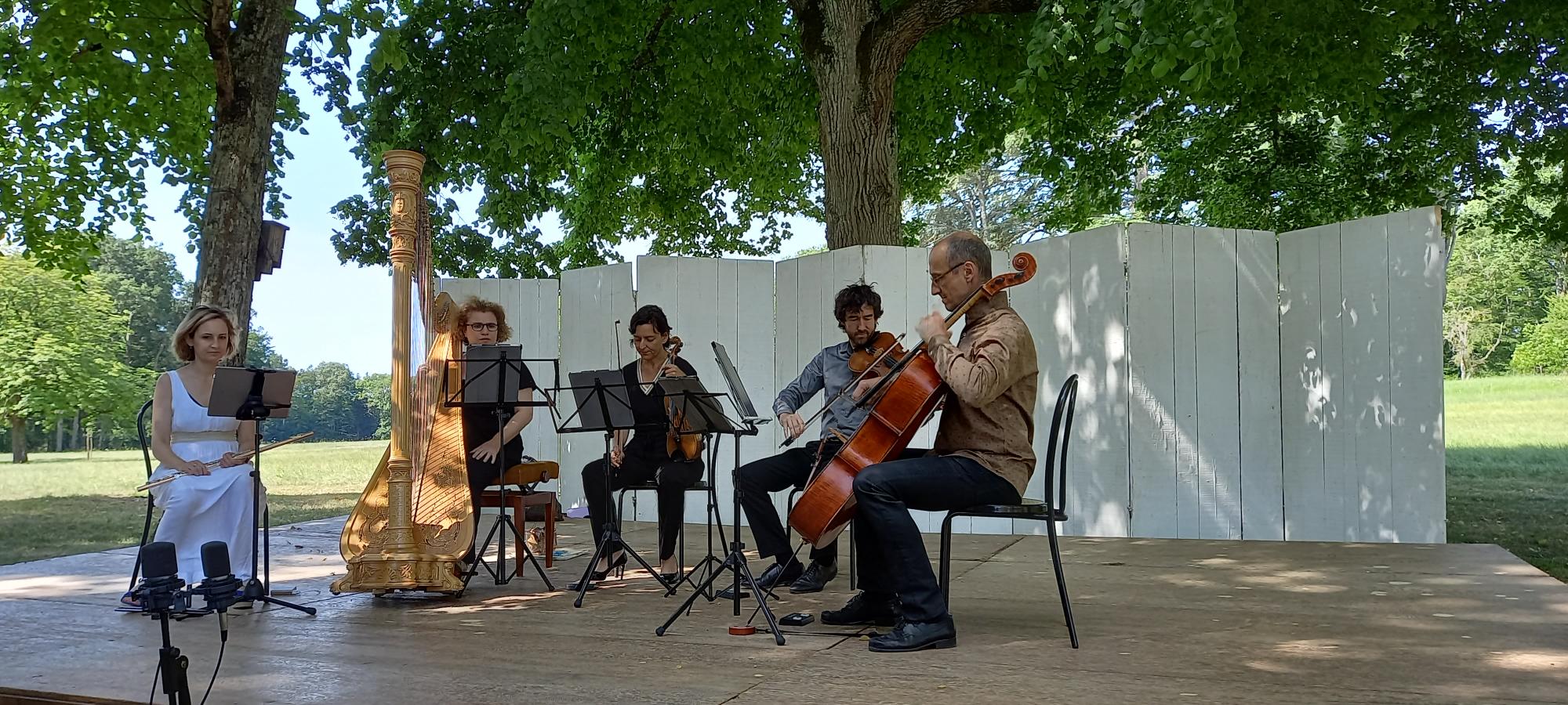 – Le samedi 19 juillet, 16h00 : Trio Kawa – Contes de Mahabharata. Musique et danse de l’Inde sur les contes de Mahabharata, par les frères Kawa, groupe de musique traditionnelle Soufi, originaire de Jaipur au Rajasthan (Inde). Une animation de handpan par Etienne Joly, 17h00 : le hand-pan est un instrument de musique à percussion mélodique, créé à la fin des années 1990. Il se compose de deux demi-coupelles en acier, embouties, jointes ensemble. Le handpan se joue posé sur les cuisses. Le joueur le fait résonner en tapant dessus avec les mains et les doigts. Un récital de mélodies françaises, 20h30 : la mélodie française est un genre qui unit musique et poésie. Les chefs d’œuvre de Debussy, Ravel et Poulenc, inspirés par les poètes tels que Apollinaire, Eluard, Gautier, seront interprétés, ainsi que des œuvres de Rosenthal et Godard, inspirés des poèmes de Nino et de La Fontaine évoquant l’univers de l’enfance.