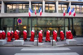 Dès lors le collectif n’aura de cesse de redoubler d’imagination pour inventer des formes d’actions percutantes. Un seul objectif : visibiliser la protestation, en attirant les médias. Parmi les expressions les plus frappantes, la très visuelle présence des Servantes Écarlates lors d’initiatives publiques. Des femmes défilent, vêtues de capes rouges, la tête baissée et couverte d’une coiffe. Des personnages inspirés d’un livre de science-fiction où les femmes sont des esclaves sexuelles, exclusivement réservées à la reproduction. Depuis, les Servantes Écarlates symbolisent la lutte pour la condition féminine. Assurer un service de qualité pour les accouchements relève en premier lieu du respect de la santé et du droit des femmes. Exigence pour la future maman, le bébé à venir, et… le papa ! Moult raisons pour que la défense d’une maternité de proximité soit une revendication portée tant par les femmes que par les hommes.