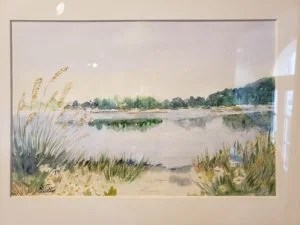 Viennent ensuite les aquarelles de Brigitte Vallin, à la tonalité délibérément douce. Ses tableaux restituent à merveille la sérénité des paysages de la Brenne. Elle se consacre à l’aquarelle depuis plus de 20 ans et peint d’après photos ou en extérieur. Elle est actuellement responsable d’un atelier de peinture sans professeur où s’entraident des participants amateurs et passionnés