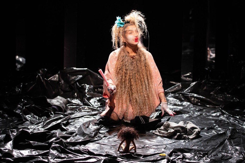Pour escorter cette voix ample, puissamment proférée, il est une autre jeune femme, qui se nomme Triinu Tammsalu. Musicienne accomplie, chanteuse, elle est aussi brutiste. C’est cela qu’elle prouve tout du long, de sa présence impassible, en inventant à vue, en pleine connivence avec la comédienne, des vibrations, des grincements, des soupirs proprement inouïs, qui répercutent dans l’atmosphère l’âme acoustique de ce brûlot, sans conteste libérateur. Ce qu’il faut dire constitue une petite forme de grand sens. Jean-Pierre Léonardini