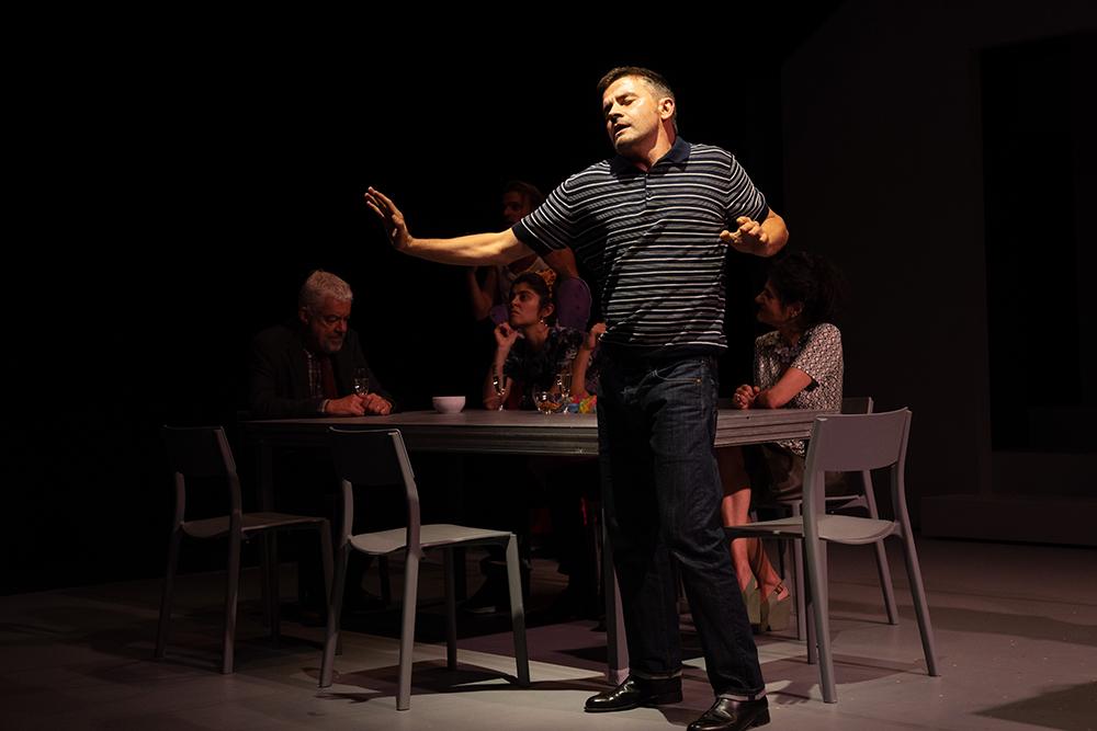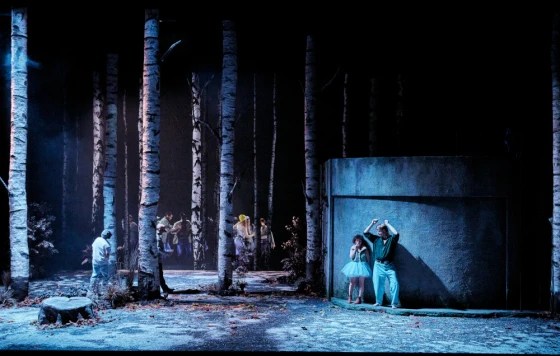 Célie Pauthe et Claude Duparfait n’en sont pas à leur première aventure commune avec l’écrivain autrichien. Ils avaient réalisé, en 2013, Des arbres à abattre, histoire tout aussi funèbre : un homme raconte les obsèques d’une amie de jeunesse qui s’est donnée la mort… L’adaptation ici se focalise sur la relation entre le narrateur et la Persane rencontrée chez l’agent immobilier Moritz, seul ami du narrateur dans ce village de l’Autriche profonde. En périphérie, un personnage mystérieux, le Suisse, compagnon de l’étrangère. Il a acheté dans cette région un terrain humide et pentu pour construire à sa femme une maison de béton, dans la perspective, selon elle, de l’y reléguer. Dans le roman, la Persane n’est évoquée qu’à travers le monologue du narrateur. De coupes en réécriture, les artistes ont créé des dialogues entre les deux protagonistes. Ce court roman, inspiré d’une histoire vécue par l’écrivain, devient ici un requiem, un tombeau poétique. La comédienne iranienne Mina Kavani nourrit son personnage de sa présence décalée, son léger accent et des poèmes de Forough Farrokhzad égrenés en farsi.