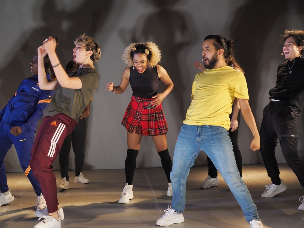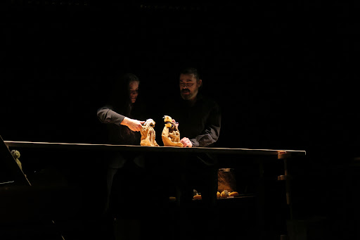 Ils ont l’art et la manière d’en dire beaucoup… sans un mot. Non pas que les artistes de la compagnie Akoreacro ne soient pas pourvus de la parole articulée, mais sous leur habituel chapiteau de cirque, ils s’expriment le plus souvent par le geste. Cette fois, ils ont investi un théâtre, celui du Rond-Point, à Paris, et pour cela ont remis sur le chantier leur spectacle créé en 2018 à la maison de la culture de Bourges. Pierre Guillois, le metteur en scène, est aussi un habitué des dialogues sans paroles. Ses derniers succès, Bigre et Les gros patinent bien, cabaret de carton, en collaboration avec Olivier Martin-Salvan, en ont fait la preuve.