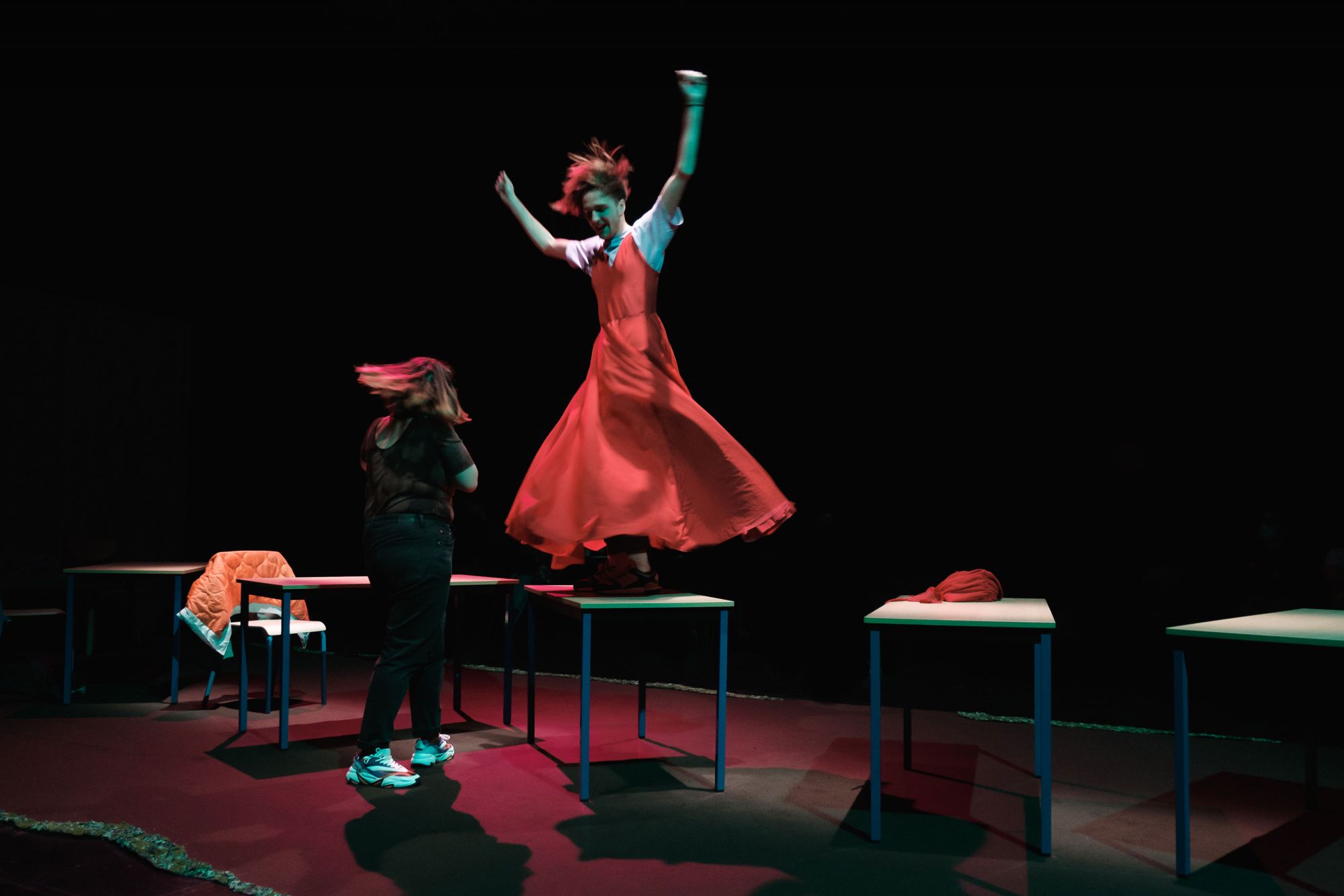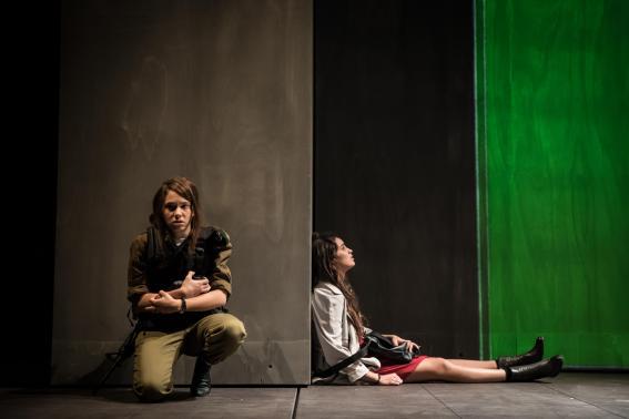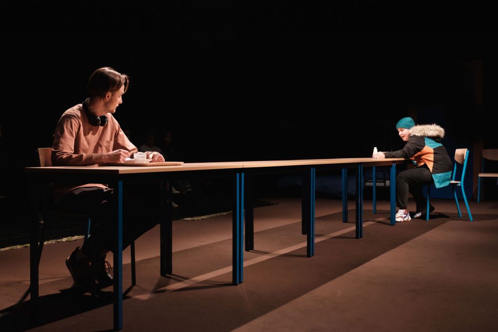 Une aire singulièrement délicate, l’adolescence étant précisément cet état intermédiaire – un Seuil– entre l’enfance et l’âge adulte. Comment rendre compte et faire spectacle sans tomber dans le didactisme à deux sous et la mièvrerie ? On pouvait donc tout craindre à la perspective de cette réalisation d’autant que les documents d’annonce et de genèse du projet expliquent bien l’étroite relation avec les instances scolaires, avec un focus sur les violences et les agressions sexuelles qui se déroulent dans les collèges et autres lycées. Le terrain était pour ainsi dire miné. D’autant que le lieu désigné est d’abord celui d’une salle de classe avec ses tables que l’on pourra fort heureusement, au fil de la représentation, disposer selon différents schémas évoquant d’autres emplacements à l’intérieur du bâtiment scolaire. Quant au sujet c’est bien celui – encore un seuil à franchir – d’un rite d’initiation qui en passe inévitablement par des protocoles d’ordre sexuel.