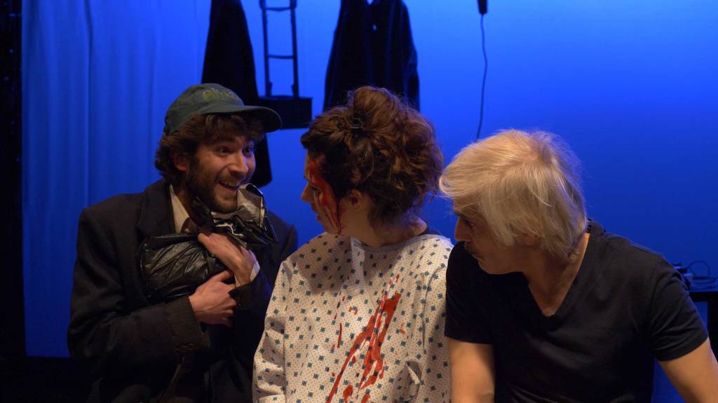 D’un texte foisonnant le trio d’adaptatrices, même en ne présentant que cinq épisodes de l’ensemble de l’œuvre de Fassbinder, a dû couper dans le vif, pour notamment mieux braquer les projecteurs sur le jeune couple interprété par Mikaël Treguer et Ambre Febvre, et présenter ainsi un axe dramatique plus clair. Sans doute auraient-elles pu aller plus loin encore, le spectacle souffrant, surtout dans la première partie, de longueurs et de redites. C’est un mince reproche au regard de la réussite de l’ensemble porté par une distribution sans faille, jouant dans le registre évoqué plus haut. Retrouver Évelyne Didi dans son rôle de composition de la grand-mère est un vrai bonheur. Jean-Pierre Han