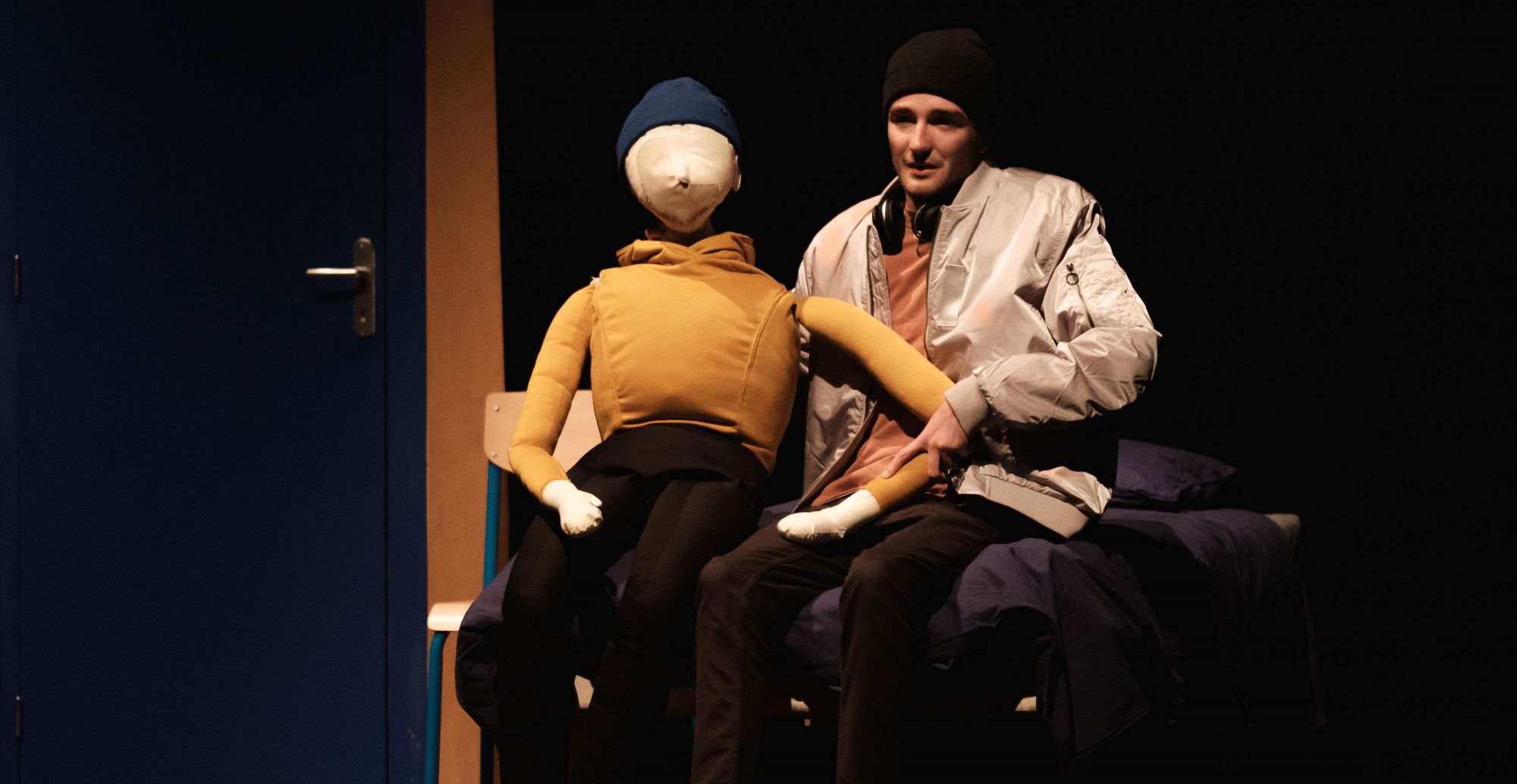 Tout était à craindre, donc ! Or, le premier mérite du travail de Pierre Cuq (réalisé en étroite collaboration avec Marilyn Mattei) est d’éviter tous les écueils, de nous mener là où peut-être nous ne nous y attendons pas. Déjà, l’écriture de Marilyn Mattei ne s’embarrasse pas de fioritures, elle possède une efficace simplicité et le metteur en scène la saisit telle quelle. Ensuite, le travail de plateau qu’il effectue est tenu d’un bout à l’autre, ce qu’atteste sa direction d’acteurs. Ils sont deux, Baptiste Dupuy, l’adolescent mis en cause, et Camille Soulerin qui assume tel un Frégoli tous les autres rôles, homme ou femme, fille ou garçon, pour mener à bien la démonstration (c’en est une, mais intelligemment et discrètement présentée) en une série de courtes séquences bien découpées. Ce qui frappe dans le déroulement du spectacle qui prend les allures d’une enquête, c’est véritablement la grâce de ces deux acteurs qui, à eux deux et un peu plus avec l’apport de voix enregistrées (mais sans vidéo, merci), parviennent à bâtir un univers sensible et trouble tout à la fois. Jean-Pierre Han